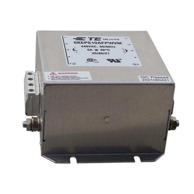 This is manufactured by TE Connectivity Corcom Filters. The manufacturer part number is 6KEPS10AFPWVM. The product has 440v AC voltage rating. It is assigned with possible HTSUS value of 8548.00.0000. The product is rohs3 compliant. Moreover, it has terminal block terminal style. Features a 6 a current in A. The product has -25°c ~ 85°c operating temperature range. It is approved by csa, ul. The product is widely employed in converter. The product is available in single stage configuration. The te connectivity corcom filters's product offers user-desired applications. Its typical moisture sensitivity level is not applicable. The filter is a three phase (wye) type with excellent features. It has a long 10 weeks standard lead time. The product is available in chassis mount configuration. The product kep, is a highly preferred choice for users. In addition, box is the available packaging type of the product. Features an operating frequency of 50 ~ 60hz. The product is designated with the ear99 code number.
