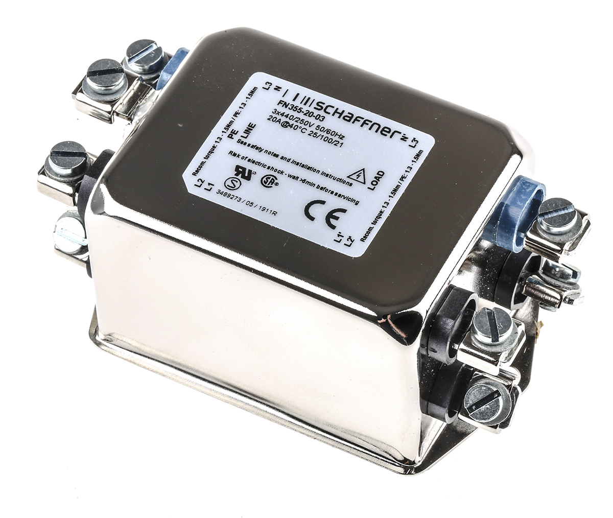 This is FN 355 Series 20A 440 V ac 400Hz Flange Mount RFI Filter with Screw Terminals 3 Phase manufactured by Schaffner. The manufacturer part number is FN355-20-03. The given dimensions of the product include 85 x 54 x 40.3mm. The product is available in chassis mount configuration. The product fn355, is a highly preferred choice for users. Additionally, the product has a maximum 20a current rating . Moreover, it has screw terminal style. Its accurate length is 85mm. In addition, the height is 40.3mm. The product comes in 54mm depth. It harbors 0.29 ma of leakage current. It has a maximum 440/250 v ac voltage rating. Furthermore, the product has 400hz operating frequency range. Whereas it is comprised of 3 phases. It includes single stage stages. It has a maximum operating temperature of +100°c. Whereas, the minimum operating temperature of the product is -25°c. It has a typical 3.4w power loss ratio .
