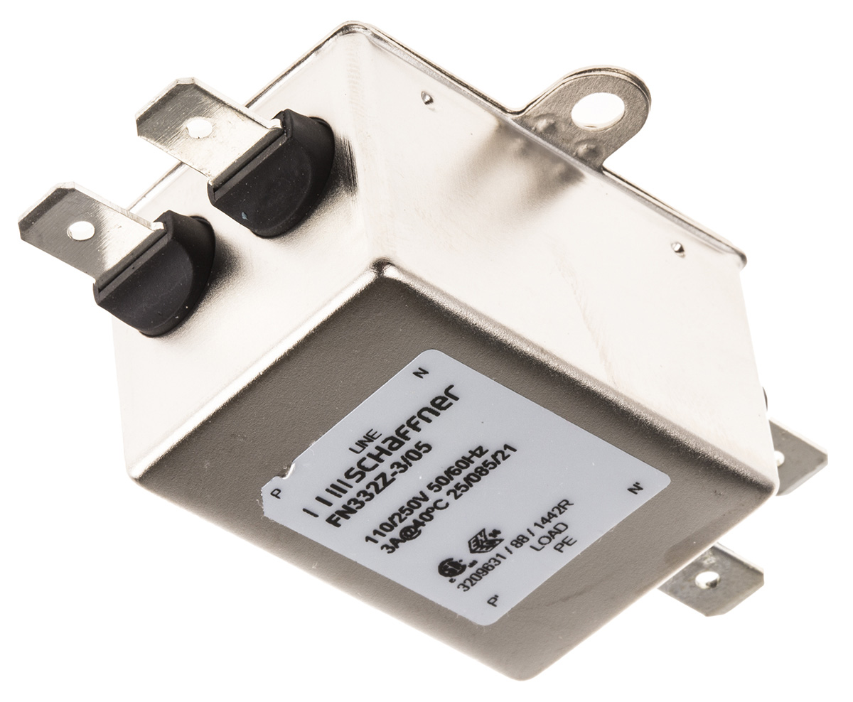 This is FN332Z Series 3A 250 V ac 400Hz Flange Mount RFI Filter with Tab Terminals manufactured by Schaffner. The manufacturer part number is FN332Z-3-05. The given dimensions of the product include 45 x 65.6 x 24.8mm. The product is available in flange mount configuration. The product fn332z, is a highly preferred choice for users. Moreover, it has tab terminal style. Whereas, the minimum operating temperature of the product is -25°c. It harbors 0.34 ma of leakage current. Its accurate length is 45mm. In addition, the height is 24.8mm. It provides a 2.2 nf, 15nf of capacitance value. The product comes in 65.6mm depth. The product has a 2 mh inductance value. It has a maximum 250 v ac voltage rating. Furthermore, the product has 400hz operating frequency range. Whereas it is comprised of 1 phases. It includes single stage stages. It has a maximum operating temperature of +100°c. Additionally, the product has a maximum 3a current rating .
