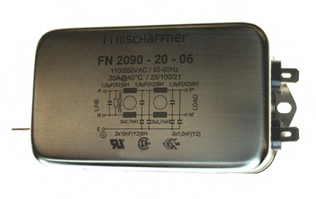 This is FN2090 Series 20A 250 V ac 0 → 400Hz Flange Mount RFI Filter with Tab Terminals manufactured by Schaffner. The manufacturer part number is FN2090-20-06. The given dimensions of the product include 113.5 x 57.5 x 54.4mm. The product is available in flange mount configuration. The product fn2090, is a highly preferred choice for users. Moreover, it has fast-on terminal style. Whereas, the minimum operating temperature of the product is -25°c. It harbors 1.02 ma of leakage current. Its accurate length is 113.5mm. In addition, the height is 45.4mm. It provides a 1 μf, 10nf of capacitance value. The product comes in 57.5mm depth. The product has a 2.7 mh inductance value. It has a maximum 250 v ac/dc voltage rating. Furthermore, the product has 0 → 400hz operating frequency range. Whereas it is comprised of 1 phases. It includes two stage stages. It has a maximum operating temperature of +100°c. Additionally, the product has a maximum 20a current rating . It carries 220kω resistance.