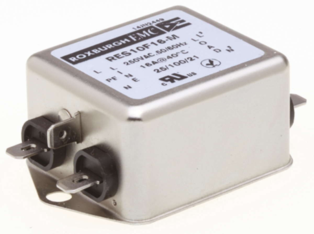 This is RES10 Series 16A 250 V ac DC → 400Hz Chassis Mount RFI Filter with Fast-On Terminals manufactured by Roxburgh EMC. The manufacturer part number is RES10F16-M. The product complies with all safety standards, such as csa 22.2 no. 8, ul 1283. The given dimensions of the product include 71 x 47 x 29mm. The product is available in chassis mount configuration. The product res10, is a highly preferred choice for users. Moreover, it has fast-on terminal style. Whereas, the minimum operating temperature of the product is -25°c. It harbors 0.002 ma of leakage current. Its accurate length is 71mm. In addition, the height is 29mm. It provides a 100nf of capacitance value. The product comes in 47mm depth. The product has a 700 μh inductance value. It has a maximum 250 v ac voltage rating. Furthermore, the product has dc → 400hz operating frequency range. Whereas it is comprised of 1 phases. It has a maximum operating temperature of +85°c. Additionally, the product has a maximum 16a current rating . It carries 1mω resistance.
