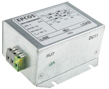 This is B84142B*R000 Series 8A 250 V ac 60Hz Screw Mount RFI Filter with Terminal Block Terminals Single Phase manufactured by EPCOS. The manufacturer part number is B84142B8R. The product complies with all safety standards, such as iec 60939. The given dimensions of the product include 113 x 144 x 61mm. The product is available in screw mount configuration. The product b84142b*r000, is a highly preferred choice for users. Additionally, the product has a maximum 8a current rating . Moreover, it has terminal block terminal style. Its accurate length is 113mm. In addition, the height is 61mm. The product comes in 144mm depth. It harbors 2.77 ma of leakage current. It has a maximum 250 v ac voltage rating. Furthermore, the product has 60hz operating frequency range. Whereas it is comprised of 1 phases. It has a maximum operating temperature of +100°c. Whereas, the minimum operating temperature of the product is -25°c. It carries 42mω resistance.