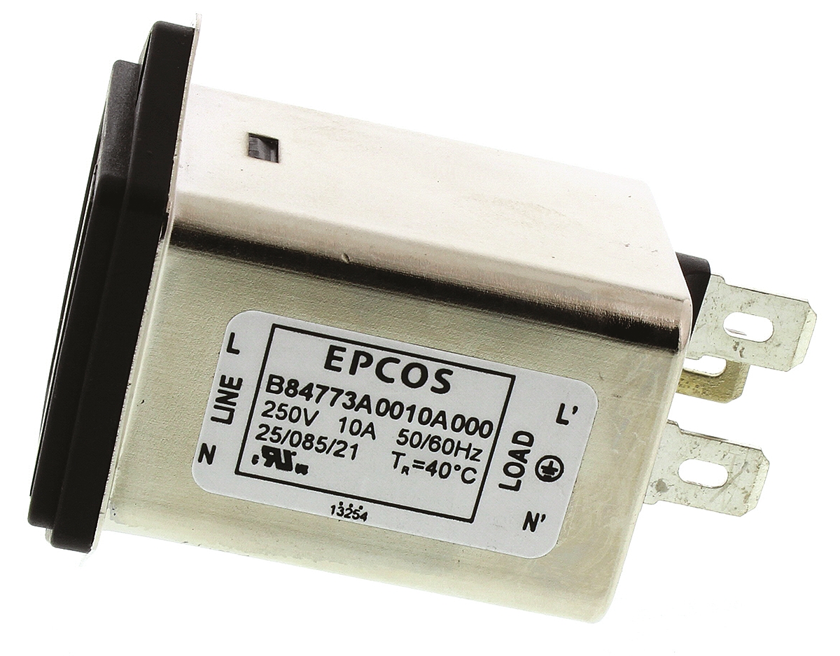 This is B84773 Series 10A 250 V ac/dc 50 → 60Hz Panel Mount RFI Filter with Tab Terminals Single Phase manufactured by EPCOS. The manufacturer part number is B84773A0010A000. The product has a current rating of 10a. The product is available in panel mount configuration. Moreover, the product has a nominal 250 v ac/dc voltage rating. The product b84773, is a highly preferred choice for users. The product has -25 → +85 °c of operating temperature range. It allows tab termination method. Furthermore, the product has 50/60hz operating frequency range.