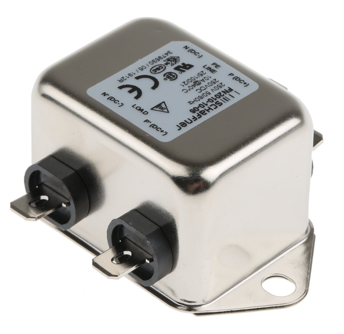 This is FN2010 Series 10A 250 V ac 0 → 400Hz Chassis Mount RFI Filter with Tab Terminals manufactured by Schaffner. The manufacturer part number is FN2010-10-06. The given dimensions of the product include 64 x 35 x 29.3mm. The product is available in chassis mount configuration. The product fn2010, is a highly preferred choice for users. Moreover, it has fast-on terminal style. Whereas, the minimum operating temperature of the product is -25°c. It harbors 0.74 ma of leakage current. Its accurate length is 64mm. In addition, the height is 29.3mm. It provides a 4.7 nf, 100nf of capacitance value. The product comes in 35mm depth. It has a typical 2.5w power loss ratio . The product has a 800 μh inductance value. It has a maximum 250 v ac/dc voltage rating. Furthermore, the product has 0 → 400hz operating frequency range. Whereas it is comprised of 1 phases. It includes single stage stages. It has a maximum operating temperature of +100°c. Additionally, the product has a maximum 10a current rating . It carries 1mω resistance.