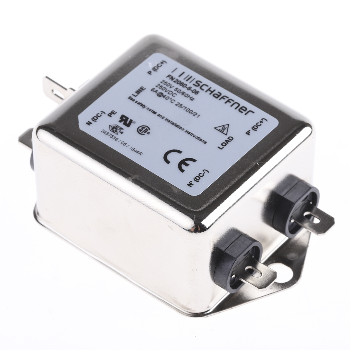 This is FN2060 Series 6A 250 V ac 400Hz Flange Mount RFI Filter with Tab Terminals Single Phase manufactured by Schaffner. The manufacturer part number is FN2060-6-06. The given dimensions of the product include 46.6 x 71 x 29.3mm. The product is available in chassis mount configuration. The product fn2060, is a highly preferred choice for users. Moreover, it has fast-on terminal style. Whereas, the minimum operating temperature of the product is -25°c. It harbors 0.734 ma of leakage current. Its accurate length is 46.6mm. In addition, the height is 29.3mm. It provides a 4.7 nf, 220nf of capacitance value. The product comes in 71mm depth. The product has a 970 μh inductance value. It has a maximum 250 v ac/dc voltage rating. Furthermore, the product has 400hz operating frequency range. Whereas it is comprised of 1 phases. It includes two stage stages. It has a maximum operating temperature of +100°c. Additionally, the product has a maximum 6a current rating . It carries 1mω resistance.