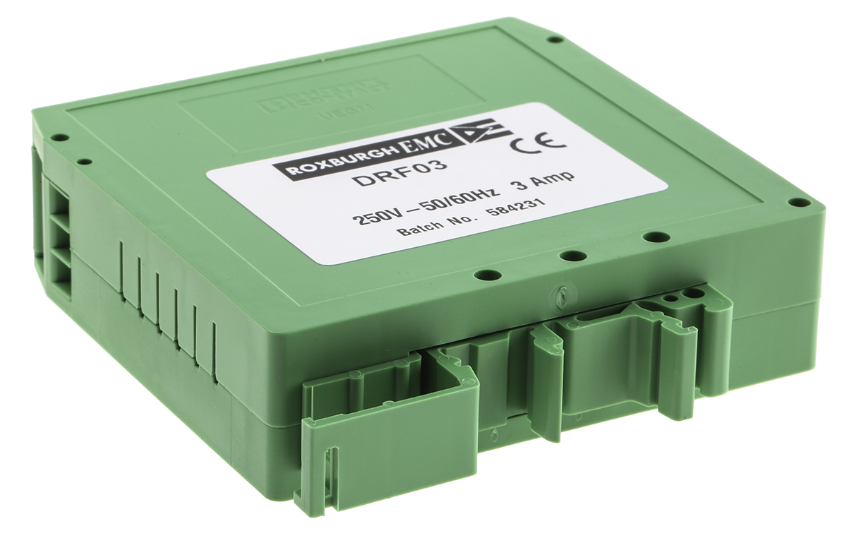 This is DRF Series 3A 250 V ac 440Hz DIN Rail RFI Filter with Screw Terminals manufactured by Roxburgh EMC. The manufacturer part number is DRF03. The product complies with all safety standards, such as en 60939. The given dimensions of the product include 80 x 22.5 x 93mm. The product is available in din rail configuration. The product drf, is a highly preferred choice for users. Moreover, it has screw terminal style. Whereas, the minimum operating temperature of the product is -25°c. It harbors 1.46 ma of leakage current. Its accurate length is 80mm. In addition, the height is 93mm. It provides a 1µf of capacitance value. The product comes in 22.5mm depth. It has a typical 0.64w power loss ratio . The product has a 3.2 mh inductance value. It has a maximum 250 v ac voltage rating. Furthermore, the product has 440hz operating frequency range. Whereas it is comprised of 1 phases. It has a maximum operating temperature of +85°c. Additionally, the product has a maximum 3a current rating . It carries 71mω resistance.