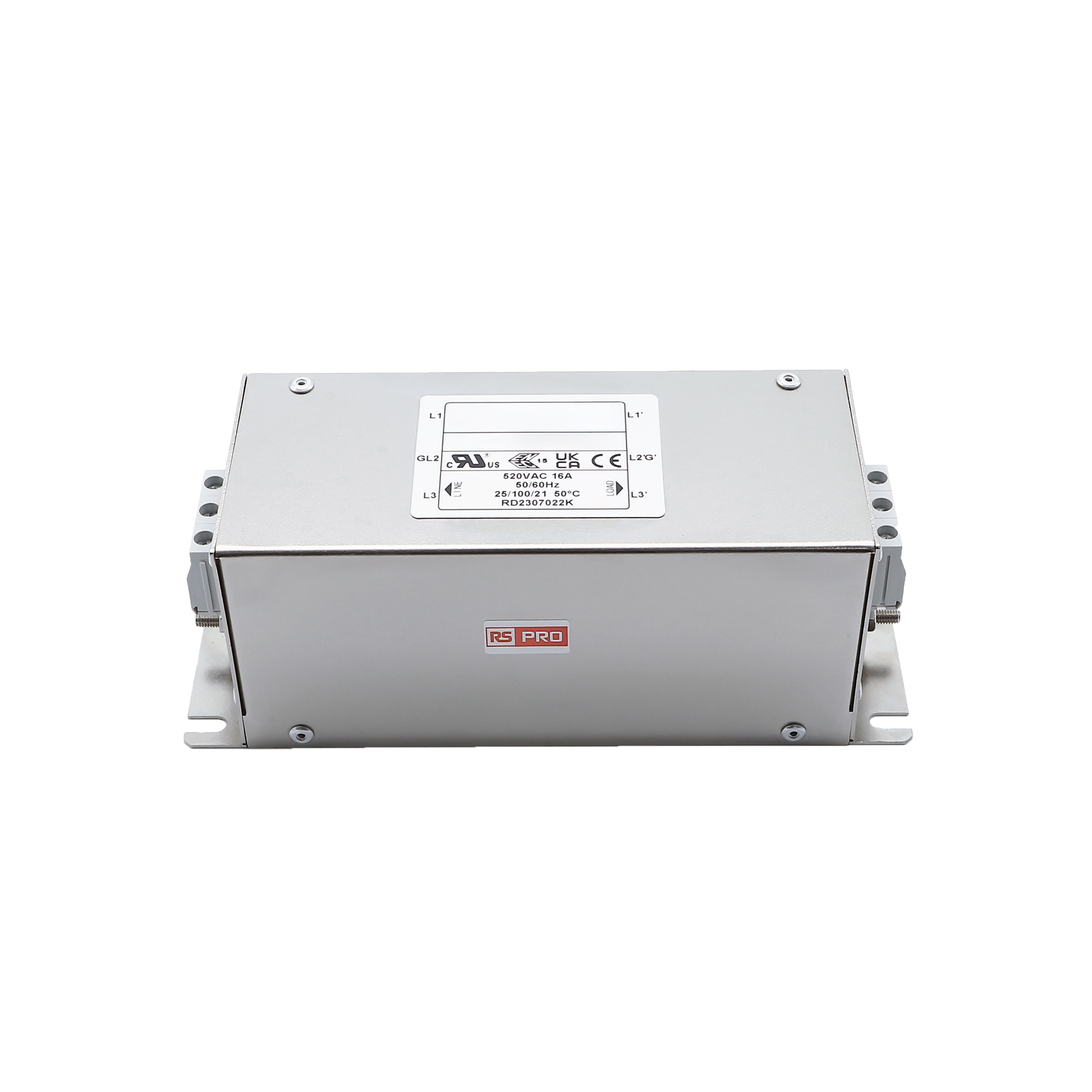 This is 16A 520 V ac 50/60Hz Chassis Mount Power Line Filter Terminal Block Three Phase manufactured by RS PRO. The manufacturer part number is 278-5156. The given dimensions of the product include 145 x 50 x 65mm. The product is available in chassis mount configuration. Moreover, it has terminal block terminal style. Additionally, the product has a maximum 16a current rating . It harbors 1.4/2.7ma of leakage current. Its accurate length is 145mm. In addition, the height is 65mm. It provides a 2.2uf, 22000pf of capacitance value. The product comes in 50mm depth. The product has a 3 x 2.2mh inductance value. It has a maximum 520 v ac voltage rating. Furthermore, the product has 50/60hz operating frequency range. Whereas it is comprised of three phases. It includes single stage stages. It has a maximum operating temperature of +100°c. Whereas, the minimum operating temperature of the product is -25°c. It carries 1mω resistance.