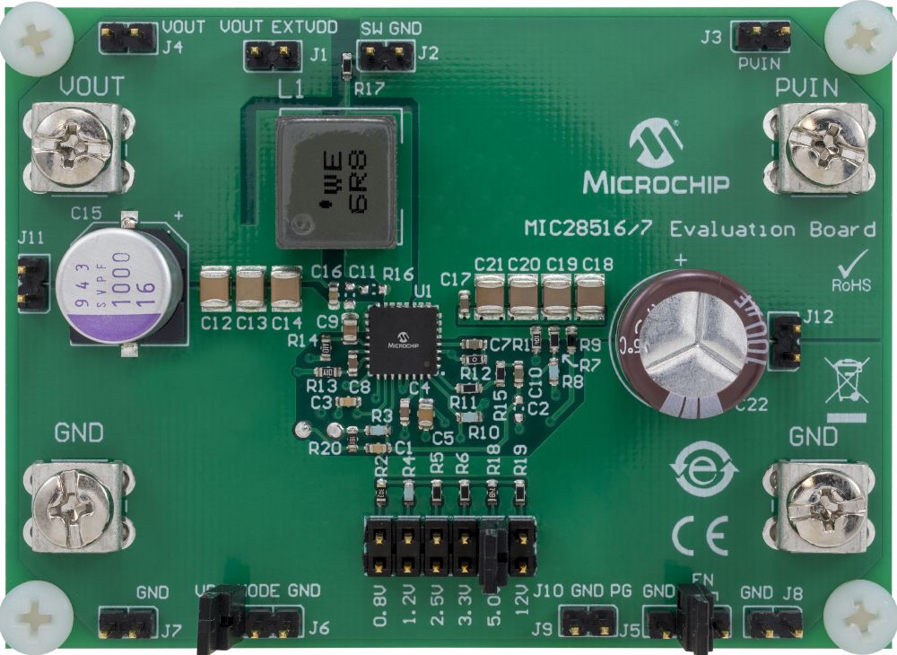 This is Evaluation Board for for MIC28516 manufactured by Microchip. The manufacturer part number is ADM00929. The product is highly suitable for mic28516. Featured Device adm00929. The kit is classified as development kit. This kit is known as evaluation board, consists of highly versatile and user-desired tools.