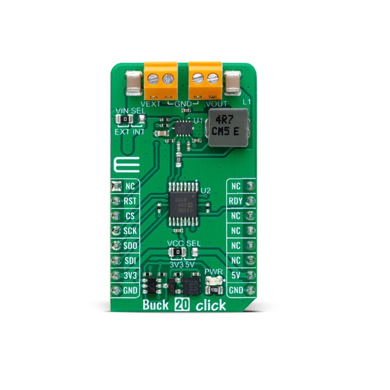 This is Buck 20 Click Buck Converter for MP2316 manufactured by Brand-Rex. The manufacturer part number is MIKROE-5533. It has a/an buck converter power management function . Featured Device mp2316. The kit is classified as development board. This kit is known as buck 20 click, consists of highly versatile and user-desired tools.