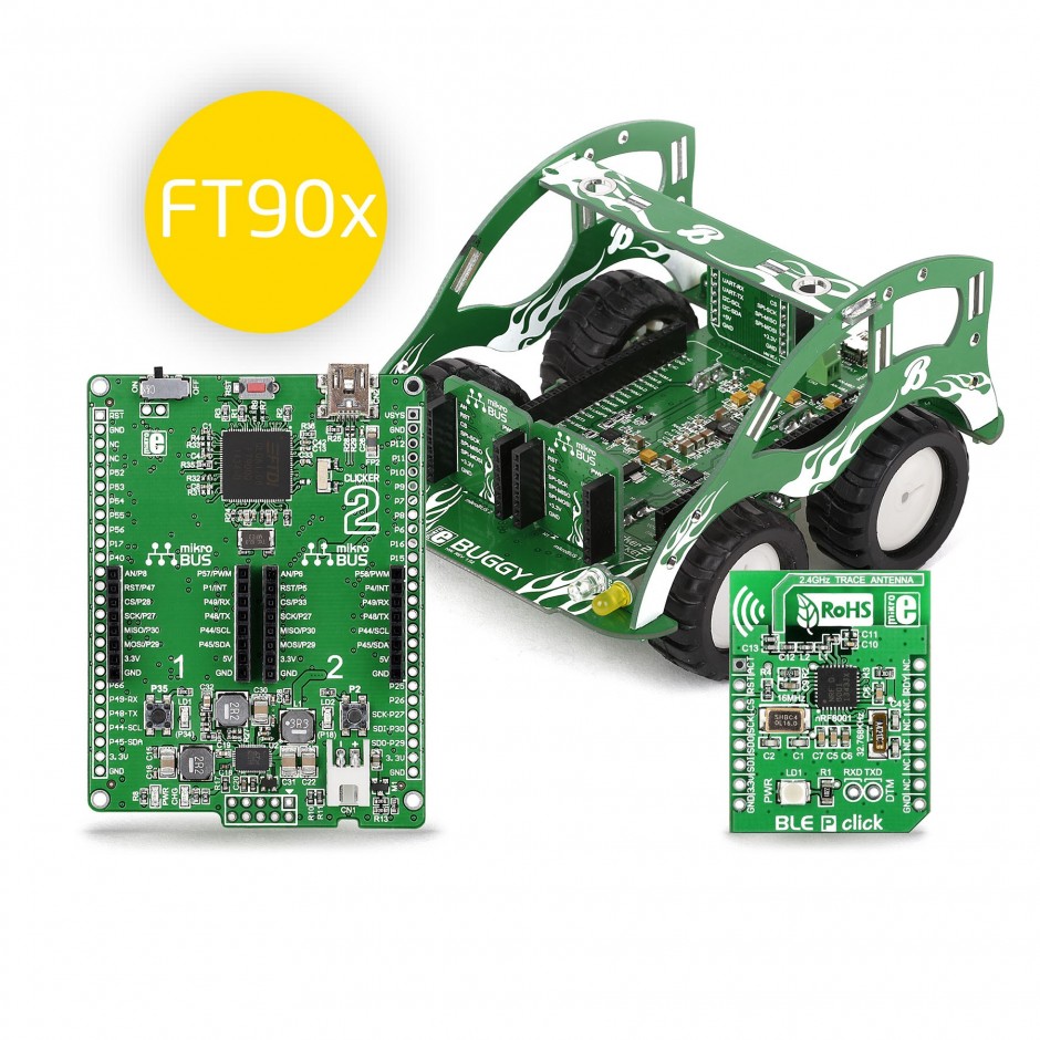 This is Buggy for FT90x manufactured by Brand-Rex. The manufacturer part number is MIKROE-1830. The kit is classified as development board. This kit is known as buggy for ft90x, consists of highly versatile and user-desired tools.