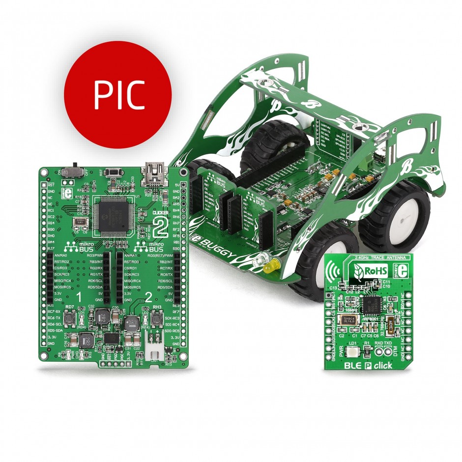 This is Buggy for PIC18FJ manufactured by Brand-Rex. The manufacturer part number is MIKROE-1750. The kit is classified as development board. This kit is known as buggy for pic18fj, consists of highly versatile and user-desired tools.