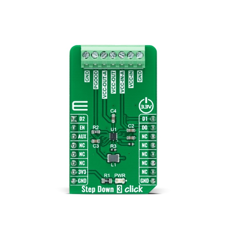 This is Step Down 3 Click for ST1PS03 manufactured by Brand-Rex. The manufacturer part number is MIKROE-5169. Featured Device st1ps03. The kit is classified as development board. This kit is known as step down 3 click, consists of highly versatile and user-desired tools.
