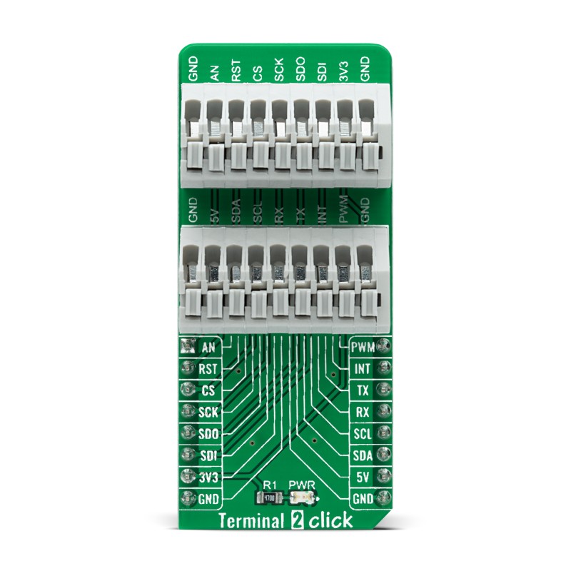 This is Terminal 2 Click manufactured by Brand-Rex. The manufacturer part number is MIKROE-4951. The kit is classified as development board. This kit is known as terminal 2 click, consists of highly versatile and user-desired tools.