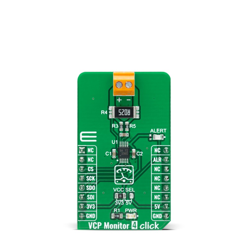 This is VCP Monitor 4 Click for INA239 manufactured by Brand-Rex. The manufacturer part number is MIKROE-4763. Featured Device ina239. The kit is classified as development board. This kit is known as vcp monitor 4 click, consists of highly versatile and user-desired tools.