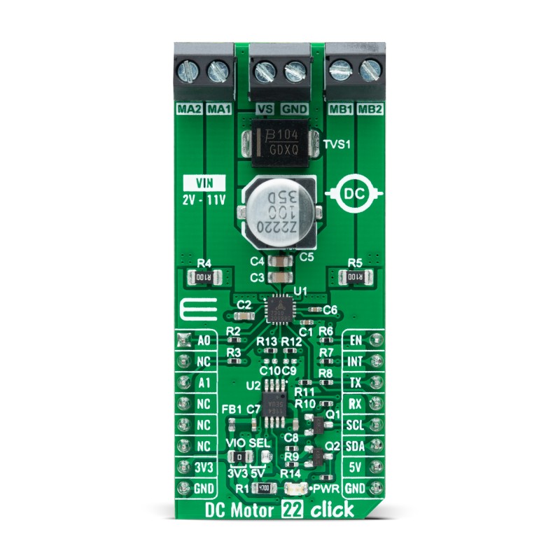 This is DC Motor 22 Click for TMC7300 manufactured by Brand-Rex. The manufacturer part number is MIKROE-5189. Featured Device tmc7300. The kit is classified as development board. This kit is known as dc motor 22 click, consists of highly versatile and user-desired tools.