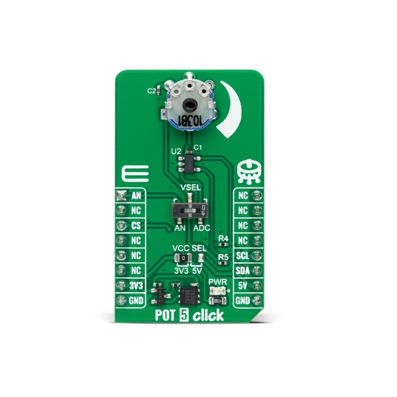 This is POT 5 Click for PDB081-P10-103B1 manufactured by Brand-Rex. The manufacturer part number is MIKROE-5445. Featured Device pdb081-p10-103b1. The kit is classified as development board. This kit is known as pot 5 click, consists of highly versatile and user-desired tools.