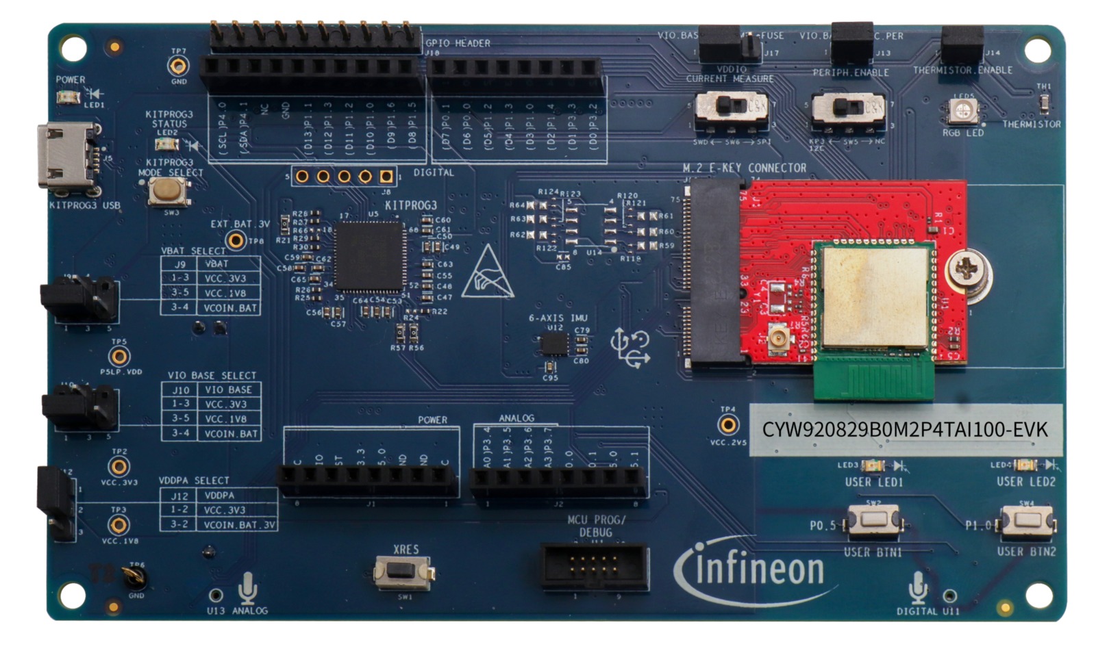 This is Evaluation Kit for Evaluation Of CYW20829 manufactured by Infineon. The manufacturer part number is CYW920829B0M2P4TAI100EVK. The product is highly suitable for evaluation of cyw20829. It has a/an evaluation kit power management function . This kit is known as cyw920829b0m2p4tai100evk, consists of highly versatile and user-desired tools. The kit is classified as evaluation kit.
