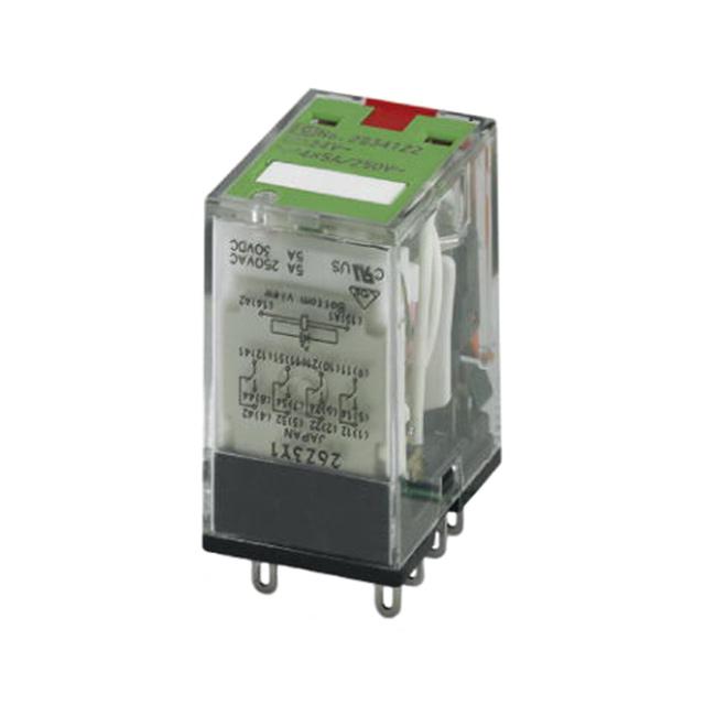 This is manufactured by Phoenix Contact. The manufacturer part number is 2834122. While it carries 250v dc of maximum DC switching voltage. The product is available in pcb mount configuration. The product rel-ir/l- 24adc/4x21 au, is a highly preferred choice for users. It is integrated with 12a switching current. The coil voltage of the product is 24 v ac. Its accurate length is 21.5mm. In addition, the height is 28mm. The product comes in 36mm depth. It has a maximum AC switching voltage of 250v ac. It also features an AC switching power of 1.25 kva. The contact is equipped with 4pdt configuration. The terminal is a through hole type. It holds up to 180 ω coil resistance. It is assigned with possible HTSUS value of 8536.41.0020. The product is rohs compliant. The coil voltage of the product is 24vac. Moreover, it has plug in terminal style. The product has -55°c ~ 70°c operating temperature range. It holds up to 180 ohms coil resistance. It has a coil current of 46 ma. The coil is a non latching type. The product's switching voltage is 250vac, 250vdc - max. This is basically a general purpose. It is shipped in bulk package . It also has a 4pdt (4 form c) contact form. Its typical moisture sensitivity level is 1 (unlimited). The operating time of the product is 10 ms. It has a contact current rating of 5 a. The product is available in socketable configuration. While 12 ms is its release time. The product is made from sturdy silver nickel (agni), gold (au) materials. Moreover, it corresponds to 28341, a base product number of the product. The product is designated with the ear99 code number.