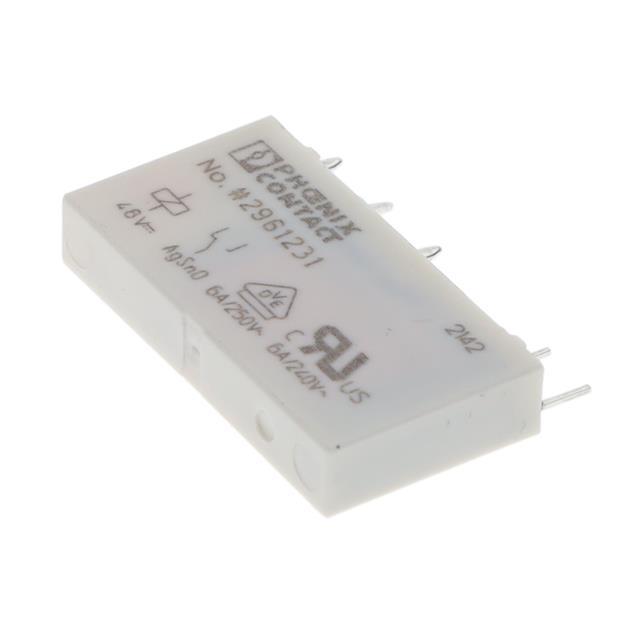 This is manufactured by Phoenix Contact. The manufacturer part number is 2961231. The product is available in din rail configuration. Robust coil power of 220mw. The product rel-mr- 48dc/21, is a highly preferred choice for users. Latching Options - no. The coil voltage of the product is 48v dc. It is integrated with 6a switching current. It holds up to 10618 ±10 % o coil resistance. It is assigned with possible HTSUS value of 8536.41.0020. The product is rohs3 compliant. The coil voltage of the product is 48vdc. Moreover, it has plug in terminal style. In addition, it is reach unaffected. The product has -40°c ~ 85°c operating temperature range. It holds up to 10.7 kohms coil resistance. It has a coil current of 4.5 ma. The coil is a non latching type. The product's switching voltage is 250vac, 250vdc - max. This is basically a general purpose. It is shipped in bulk package . It also has a spdt (1 form c) contact form. Its typical moisture sensitivity level is 1 (unlimited). The operating time of the product is 5 ms. It has a long 4 weeks standard lead time. It has a contact current rating of 6 a. The product is available in socketable configuration. The product rel-mr, is a highly preferred choice for users. While 2.5 ms is its release time. The product is made from sturdy silver tin oxide (agsno) materials. Moreover, it corresponds to 29612, a base product number of the product. The product is designated with the ear99 code number.