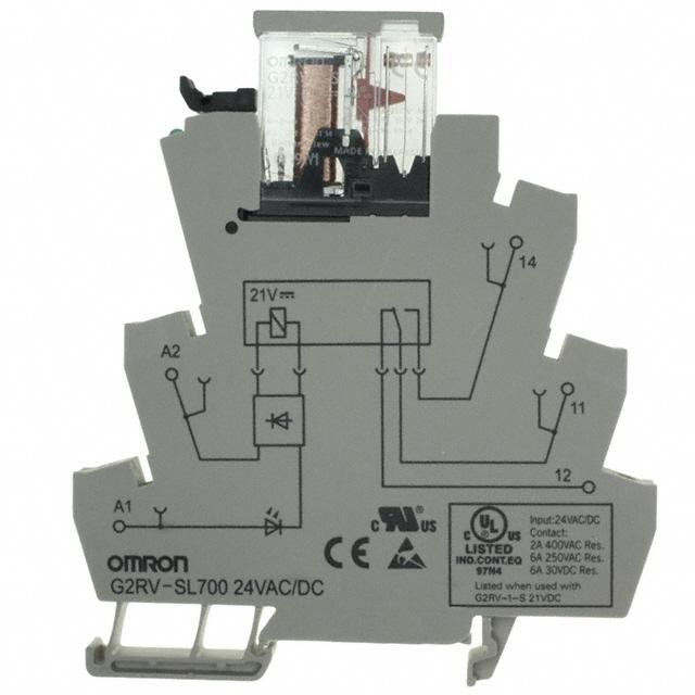 This is manufactured by Omron Automation and Safety. The manufacturer part number is G2RV-SL700 AC/DC24. While the must release voltage is a 2.4 vac/dc. It is assigned with possible HTSUS value of 8536.41.0020. The coil voltage of the product is 24vac/dc. Moreover, it has screw terminal terminal style. The product has -40°c ~ 55°c operating temperature range. It is approved by ce, culus, tuv. It has a coil current of 13 ma. The coil is a non latching type. The product's switching voltage is 440vac, 125vdc - max. On the other hand, 19.2 vac/dc is the given crucial/must operating voltage. This is basically a general purpose. It also has a spdt (1 form c) contact form. Its typical moisture sensitivity level is not applicable. The operating time of the product is 20 ms. It has a contact current rating of 6 a. The splendid features of the product include socket included. The product is available in din rail configuration. The product g2rv, is a highly preferred choice for users. While 40 ms is its release time. In addition, bulk is the available packaging type of the product. Moreover, it corresponds to g2rv-sl, a base product number of the product. The product is designated with the ear99 code number.