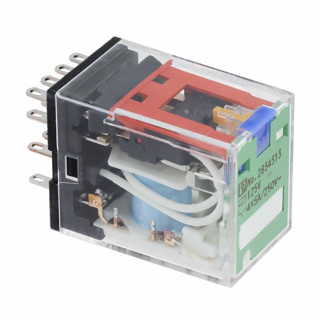 This is manufactured by Phoenix Contact. The manufacturer part number is 2834313. While it carries 250v of maximum DC switching voltage. The product is available in pcb mount configuration. The product rel-ir, is a highly preferred choice for users. It is integrated with 1a switching current. The coil voltage of the product is 125 v dc. Its accurate length is 21.5mm. In addition, the height is 28mm. The product comes in 36mm depth. It has a maximum AC switching voltage of 250v. It also features an AC switching power of 1.25 kva. The contact is equipped with 4pdt configuration. The terminal is a plug in type. It holds up to 17.38 kω coil resistance. It is assigned with possible HTSUS value of 8536.49.0050. The product is rohs compliant. The coil voltage of the product is 125vdc. Moreover, it has plug in terminal style. The product has -55°c ~ 70°c operating temperature range. It holds up to 17.38 kohms coil resistance. It has a coil current of 7.2 ma. The coil is a non latching type. The product's switching voltage is 250vac, 250vdc - max. This is basically a general purpose. It is shipped in bulk package . It also has a 4pdt (4 form c) contact form. Its typical moisture sensitivity level is 1 (unlimited). The operating time of the product is 13 ms. It has a contact current rating of 5 a. The splendid features of the product include diode, lighted indicator, test button. The product is available in socketable configuration. While 5 ms is its release time. The product is made from sturdy silver nickel (agni), gold (au) materials. Moreover, it corresponds to 28343, a base product number of the product. The product is designated with the ear99 code number.