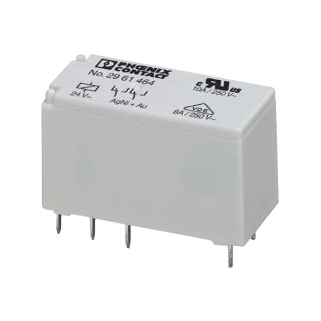 This is manufactured by Phoenix Contact. The manufacturer part number is 2961464. While it carries 36v dc of maximum DC switching voltage. It has a maximum operating temperature of +85°c. The product is available in pcb mount configuration. Whereas, the minimum operating temperature of the product is -40°c. The product rel-mr- 24ac/21-21au, is a highly preferred choice for users. Latching Options - no. The coil voltage of the product is 24v ac. Its accurate length is 12.7mm. In addition, the height is 29mm. It is integrated with 10a switching current. Applications Information involves power. The product comes in 15.7mm depth. It has a maximum AC switching voltage of 30v ac. It bears a maximum 190 w of DC switching power. The contact is equipped with dpdt configuration. It also features an AC switching power of 2 kva. The product is made from sturdy gold plated materials. It has equipped with 2 poles. The terminal is a through hole type. It holds up to 350ω coil resistance. It is assigned with possible HTSUS value of 8536.41.0020. The product is rohs3 compliant. The coil voltage of the product is 24vac. Moreover, it has pc pin terminal style. In addition, it is reach unaffected. The product has -40°c ~ 85°c operating temperature range. It is approved by culus, eac, ur. It holds up to 350 ohms coil resistance. It has a coil current of 24 ma. The coil is a non latching type. This is basically a general purpose. It also has a dpdt (2 form c) contact form. Its typical moisture sensitivity level is 1 (unlimited). The operating time of the product is 12 ms. It has a long 4 weeks standard lead time. It has a contact current rating of 8 a. The product is available in through hole configuration. The product rel-mr, is a highly preferred choice for users. The product's switching voltage is 250vac, 250vdc - max. While 9 ms is its release time. In addition, bulk is the available packaging type of the product. The product is made from sturdy silver nickel (agni), gold (au) materials. Moreover, it corresponds to 29614, a base product number of the product. The product is designated with the ear99 code number.