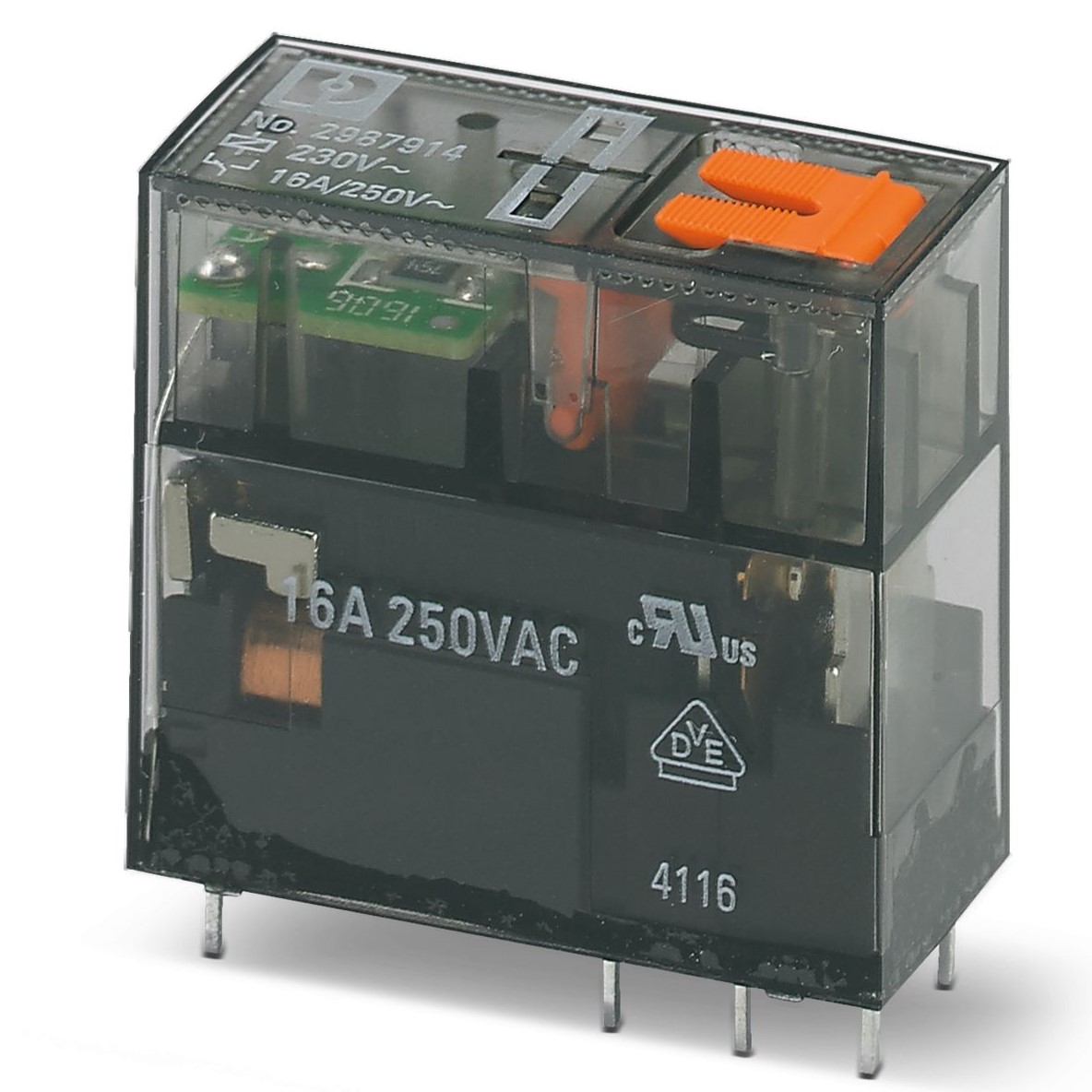 This is manufactured by Phoenix Contact. The manufacturer part number is 2987914. It is capable of doing 5000000 cycles in a lifetime . Whereas, the minimum operating temperature of the product is -40°c. The product is available in plug in configuration. The product rel-mr-230ac/21hc/ms, is a highly preferred choice for users. Latching Options - no. The coil voltage of the product is 230v ac. The product comes in 25mm depth. In addition, the height is 29mm. Its accurate length is 12.7mm. The contact is equipped with spdt configuration. It has equipped with 1 poles. It has a maximum operating temperature of +70°c. The product is made from sturdy silver alloy materials. It is assigned with possible HTSUS value of 8536.49.0075. The product is rohs compliant. The coil voltage of the product is 230vac. Moreover, it has pc pin terminal style. The product has -40°c ~ 70°c operating temperature range. It holds up to 65.7 kohms coil resistance. It has a coil current of 3.5 ma. The coil is a non latching type. The product's switching voltage is 250vac, 250vdc - max. This is basically a general purpose. It is shipped in tube package . It also has a spdt (1 form c) contact form. Its typical moisture sensitivity level is 1 (unlimited). It has a long 4 weeks standard lead time. It has a contact current rating of 16 a. The splendid features of the product include mechanical indicator, test button. The product is available in through hole configuration. The product rel-mr, is a highly preferred choice for users. While 8 ms is its release time. The product is made from sturdy silver nickel (agni) materials. Moreover, it corresponds to 29879, a base product number of the product. The product is designated with the ear99 code number.
