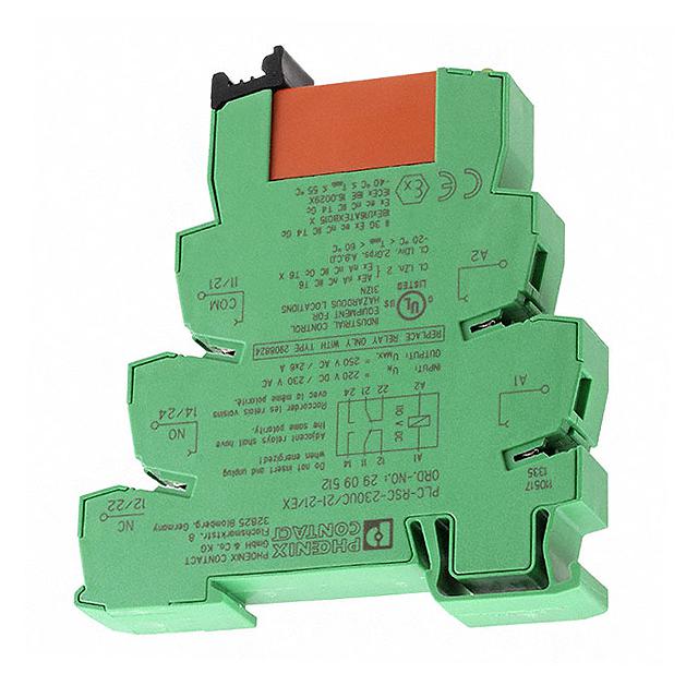 This is manufactured by Phoenix Contact. The manufacturer part number is 2909512. It is capable of doing 30000000 cycles in a lifetime . The given dimensions of the product include 14 x 94 x 80mm. The product is available in din rail configuration. The product's switching voltage is 250v ac/dc. Whereas, the minimum operating temperature of the product is -40 °c, -20°c. It has a maximum operating temperature of +55 °c, +60°c. The coil voltage of the product is 220 v dc, 230v ac. The product comes in 94mm depth. In addition, the height is 80mm. The product has 220 v dc, 230v ac of minimum input voltage. Its accurate length is 14mm. It has about (110 v dc) 4.2 ma, (120 v ac) 4.5ma input current . The product has -20 → +60 °c, -40 → +55°c of operating temperature range. The contact is equipped with dpdt configuration. It has equipped with 2 poles. The terminal is a screw type. The product is made from sturdy silver alloy materials. It is assigned with possible HTSUS value of 8536.49.0050. The product is rohs3 compliant. The coil voltage of the product is 230vac/dc. Moreover, it has screw terminal terminal style. In addition, it is reach affected. The product has -40°c ~ 55°c operating temperature range. It is approved by ce, ukca. It holds up to 51.1 kohms coil resistance. It has a coil current of 4.5 ma. The coil is a non latching type. This is basically a general purpose. It also has a dpdt (2 form c) contact form. Its typical moisture sensitivity level is not applicable. The operating time of the product is 7 ms. It has a long 4 weeks standard lead time. It has a contact current rating of 6 a. The splendid features of the product include lighted indicator, socket included. The product plc-rsc, is a highly preferred choice for users. The product's switching voltage is 250vac, 250vdc - max. While 10 ms is its release time. In addition, bulk is the available packaging type of the product. The product is made from sturdy silver nickel (agni) materials. Moreover, it corresponds to 29095, a base product number of the product. The product is designated with the ear99 code number.