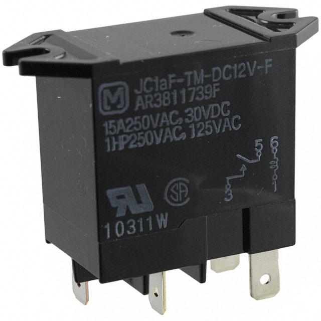 This is manufactured by Panasonic Electric Works. The manufacturer part number is JC1AF-TM-DC12V-F. While the must release voltage is a 1.2 vdc. It is assigned with possible HTSUS value of 8536.41.0050. The coil voltage of the product is 12vdc. Moreover, it has quick connect - 0.187" (4.7mm) terminal style. In addition, it is reach unaffected. The product has -50°c ~ 60°c operating temperature range. It is approved by csa, tuv, ur, vde. It holds up to 160 ohms coil resistance. It has a coil current of 75 ma. The coil is a non latching type. The product's switching voltage is 250vac - max. On the other hand, 9.6 vdc is the given crucial/must operating voltage. This is basically a general purpose. It also has a spst-no (1 form a) contact form. Its typical moisture sensitivity level is 1 (unlimited). The operating time of the product is 30 ms. It has a contact current rating of 15 a. The product is available in chassis mount configuration. The product jc, is a highly preferred choice for users. While 10 ms is its release time. In addition, bulk is the available packaging type of the product. The product is made from sturdy silver tin oxide (agsno) materials. Moreover, it corresponds to jc1af-t, a base product number of the product. The product is designated with the ear99 code number.