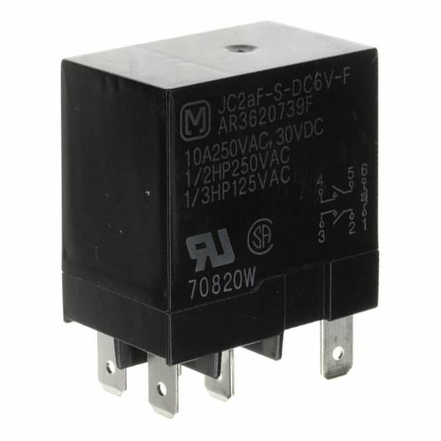 This is manufactured by Panasonic Electric Works. The manufacturer part number is JC2AF-S-DC6V-F. While the must release voltage is a 0.6 vdc. It is assigned with possible HTSUS value of 8536.41.0050. The coil voltage of the product is 6vdc. Moreover, it has plug in, quick connect - 0.187" (4.7mm) terminal style. In addition, it is reach unaffected. The product has -50°c ~ 60°c operating temperature range. It is approved by csa, tuv, ur, vde. It holds up to 36 ohms coil resistance. It has a coil current of 167 ma. The coil is a non latching type. The product's switching voltage is 250vac - max. On the other hand, 4.8 vdc is the given crucial/must operating voltage. This is basically a general purpose. It also has a dpst-no (2 form a) contact form. Its typical moisture sensitivity level is 1 (unlimited). The operating time of the product is 30 ms. It has a contact current rating of 10 a. The product is available in socketable configuration. The product jc, is a highly preferred choice for users. While 10 ms is its release time. In addition, bulk is the available packaging type of the product. The product is made from sturdy silver tin oxide (agsno) materials. Moreover, it corresponds to jc2af, a base product number of the product. The product is designated with the ear99 code number.