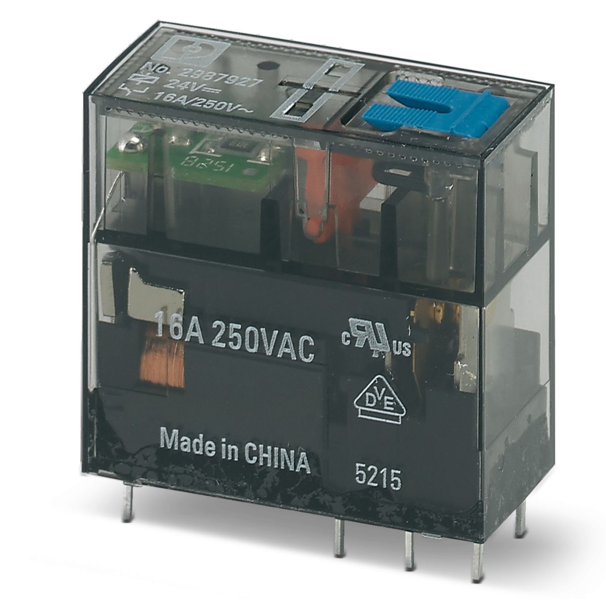 This is SPDT Non-Latching Relay Plug In 24V dc Coil manufactured by Phoenix Contact. The manufacturer part number is 2987927. It is capable of doing 5000000 cycles in a lifetime . Whereas, the minimum operating temperature of the product is -40°c. The product is available in plug in configuration. The product rel-mr- 24dc/21hc au/ms, is a highly preferred choice for users. Latching Options - no. The coil voltage of the product is 24v dc. The product comes in 25mm depth. In addition, the height is 29mm. Its accurate length is 12.7mm. The contact is equipped with spdt configuration. It has equipped with 1 poles. It has a maximum operating temperature of +70°c. The product is made from sturdy gold plated materials. It is assigned with possible HTSUS value of 8536.41.0050. The product is rohs3 compliant. The coil voltage of the product is 24vdc. Moreover, it has pc pin terminal style. In addition, it is reach unaffected. The product has -40°c ~ 70°c operating temperature range. It holds up to 1.41 kohms coil resistance. It has a coil current of 17 ma. The coil is a non latching type. The product's switching voltage is 250vac, 250vdc - max. This is basically a general purpose. It is shipped in bulk package . It also has a spdt (1 form c) contact form. Its typical moisture sensitivity level is 1 (unlimited). The operating time of the product is 9 ms. It has a long 4 weeks standard lead time. It has a contact current rating of 16 a. The splendid features of the product include diode, lighted indicator, mechanical indicator, test button. The product is available in through hole configuration. The product rel-mr, is a highly preferred choice for users. While 6 ms is its release time. The product is made from sturdy silver nickel (agni), gold (au) materials. Moreover, it corresponds to 29879, a base product number of the product. The product is designated with the ear99 code number.