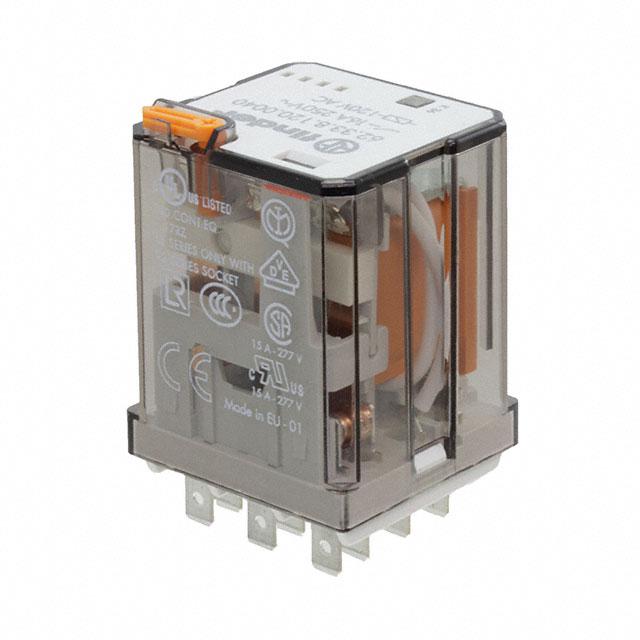 This is manufactured by Finder Relays, Inc.. The manufacturer part number is 62.33.8.120.0050. While the must release voltage is a 24 vac. It is assigned with possible HTSUS value of 8536.49.0075. The product is rohs3 compliant. The coil voltage of the product is 120vac. Moreover, it has plug in, quick connect - 0.187" (4.7mm) terminal style. In addition, it is reach unaffected. The product has -40°c ~ 70°c operating temperature range. It is approved by ccc, ce, csa, curus, eac, enec, rina, ukca, vde. It holds up to 1.94 kohms coil resistance. It has a coil current of 18.6 ma. The coil is a non latching type. The product's switching voltage is 400vac - max. On the other hand, 96 vac is the given crucial/must operating voltage. This is basically a general purpose. It is shipped in bulk package . It also has a 3pdt (3 form c) contact form. Its typical moisture sensitivity level is not applicable. The operating time of the product is 11 ms. It has a contact current rating of 16 a. The splendid features of the product include lighted indicator, test button. The product is available in socketable configuration. The product 62, is a highly preferred choice for users. While 4 ms is its release time. The product is made from sturdy silver cadmium oxide (agcdo) materials. Moreover, it corresponds to 62.33.8, a base product number of the product. The product is designated with the ear99 code number.