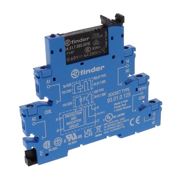 This is manufactured by Finder Relays, Inc.. The manufacturer part number is 38.51.0.125.0060. It is assigned with possible HTSUS value of 8536.49.0050. The product is rohs3 compliant. The coil voltage of the product is 125vac/dc. Moreover, it has screw terminal terminal style. In addition, it is reach unaffected. The product has -40°c ~ 55°c operating temperature range. It is approved by ce, csa, curus, eac, rina, ukca. It holds up to 25 kohms coil resistance. It has a coil current of 5 ma. The coil is a non latching type. The product's switching voltage is 400vac - max. On the other hand, 88 vac/dc is the given crucial/must operating voltage. This is basically a general purpose. It is shipped in bulk package . It also has a spdt (1 form c) contact form. Its typical moisture sensitivity level is not applicable. The operating time of the product is 5 ms. While the must release voltage is a 12.5 vac/dc. It has a long 6 weeks standard lead time. It has a contact current rating of 6 a. The splendid features of the product include socket included. The product is available in din rail configuration. The product 38, is a highly preferred choice for users. While 6 ms is its release time. The product is made from sturdy silver nickel (agni) materials. Moreover, it corresponds to 38.51.0, a base product number of the product. The product is designated with the ear99 code number.