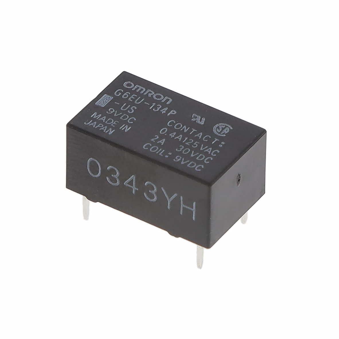This is manufactured by Omron Electronics Inc-EMC Div. The manufacturer part number is G6EU-134P-US DC9. It is assigned with possible HTSUS value of 8536.41.0020. The coil voltage of the product is 9vdc. Moreover, it has pc pin terminal style. The product has -40°c ~ 70°c operating temperature range. It holds up to 405 ohms coil resistance. It has a coil current of 22.2 ma. The coil is a latching, single coil type. The product's switching voltage is 250vac, 220vdc - max. Seal rating options: sealed - fully. On the other hand, 6.3 vdc is the given crucial/must operating voltage. This is basically a general purpose. It is shipped in bulk package . It also has a spdt (1 form c) contact form. Its typical moisture sensitivity level is not applicable. The operating time of the product is 5 ms. It has a long 14 weeks standard lead time. It has a contact current rating of 3 a. The product is available in through hole configuration. The product g6e, is a highly preferred choice for users. While 5 ms is its release time. The product is designated with the ear99 code number. Moreover, it corresponds to g6eu-134, a base product number of the product. The product is made from sturdy silver (ag), gold (au) materials.