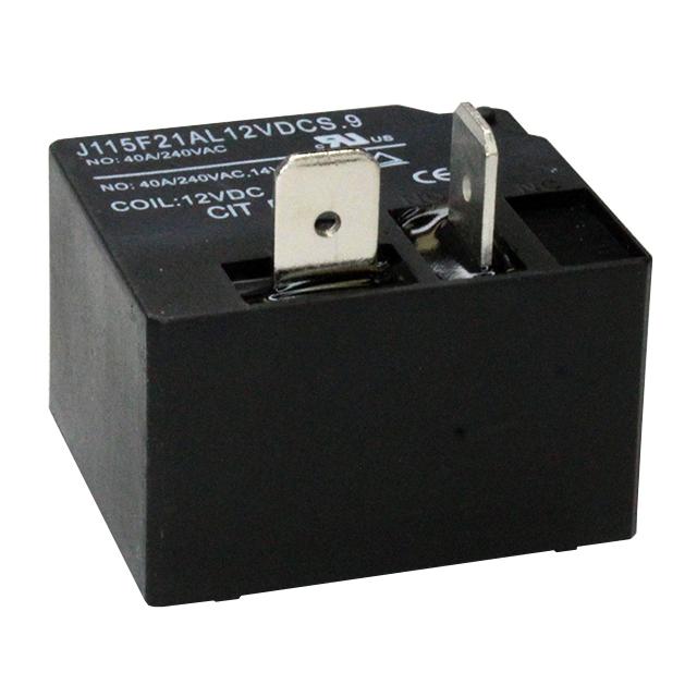 This is manufactured by CIT Relay and Switch. The manufacturer part number is J115F21AL12VDCS.9. It is assigned with possible HTSUS value of 8536.41.0050. The product is rohs compliant. The coil voltage of the product is 12vdc. Moreover, it has pc pin, quick connect - 0.250" (6.3mm) terminal style. In addition, it is reach unaffected. The product has -55°c ~ 125°c operating temperature range. It holds up to 160 ohms coil resistance. It has a coil current of 75 ma. The coil is a non latching type. The product's switching voltage is 277vac, 110vdc - max. Seal rating options: sealed - fully. On the other hand, 9 vdc is the given crucial/must operating voltage. This is basically a general purpose. It is shipped in tube package . It also has a spst-no (1 form a) contact form. Its typical moisture sensitivity level is 1 (unlimited). The operating time of the product is 15 ms. While the must release voltage is a 1.2 vdc. It has a long 14 weeks standard lead time. It has a contact current rating of 40 a. The product is available in through hole configuration. The product j115f2, is a highly preferred choice for users. While 10 ms is its release time. The coil is a class f insulation. The product is made from sturdy silver tin oxide (agsno) materials. Moreover, it corresponds to j115f21, a base product number of the product. The product is designated with the ear99 code number.