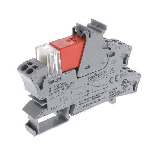 This is manufactured by WAGO Corporation. The manufacturer part number is 788-311. It is assigned with possible HTSUS value of 8536.41.0020. The product is rohs3 compliant. The coil voltage of the product is 12vdc. Moreover, it has spring terminal terminal style. In addition, it is reach affected. The product has -40°c ~ 70°c operating temperature range. It holds up to 333.3 ohms coil resistance. It has a coil current of 36 ma. The coil is a non latching type. The product's switching voltage is 250vac - max. On the other hand, 10.8 vdc is the given crucial/must operating voltage. This is basically a general purpose. It also has a dpdt (2 form c) contact form. Its typical moisture sensitivity level is 1 (unlimited). The operating time of the product is 8 ms. It has a long 8 weeks standard lead time. It has a contact current rating of 8 a. The splendid features of the product include lighted indicator. The product is available in din rail configuration. The product 788, is a highly preferred choice for users. While 13 ms is its release time. In addition, bulk is the available packaging type of the product. The product is made from sturdy silver nickel (agni) materials. Moreover, it corresponds to 788, a base product number of the product. The product is designated with the ear99 code number.