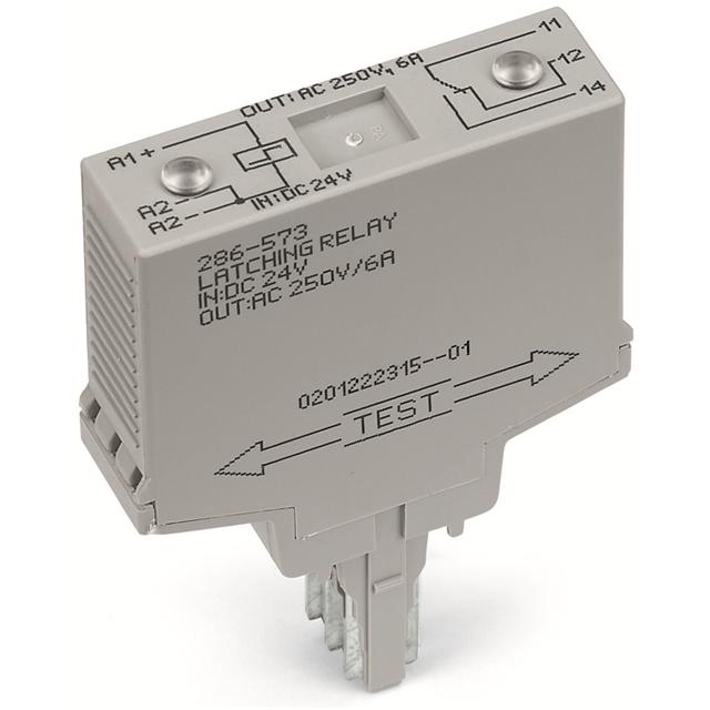 This is manufactured by WAGO Corporation. The manufacturer part number is 286-573. It is assigned with possible HTSUS value of 8536.41.0020. The product is rohs3 compliant. The coil voltage of the product is 24vdc. Moreover, it has plug in terminal style. The product has -25°c ~ 50°c operating temperature range. It is approved by eac. It holds up to 600 ohms coil resistance. It has a coil current of 40 ma. The coil is a non latching type. The product's switching voltage is 250vac - max. This is basically a general purpose. It also has a spdt (1 form c) contact form. Its typical moisture sensitivity level is not applicable. It has a long 12 weeks standard lead time. It has a contact current rating of 6 a. The splendid features of the product include lighted indicator. The product is available in socketable configuration. The product 286, is a highly preferred choice for users. In addition, box is the available packaging type of the product. The product is designated with the ear99 code number. The product is made from sturdy silver tin oxide (agsno) materials.