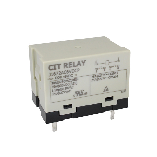 This is manufactured by CIT Relay and Switch. The manufacturer part number is J1672AC6VDCP. While the must release voltage is a 0.6 vdc. It is assigned with possible HTSUS value of 8536.41.0050. The product is rohs3 compliant. The coil voltage of the product is 6vdc. Moreover, it has pc pin terminal style. In addition, it is reach info available upon request. The product has -40°c ~ 85°c operating temperature range. It is approved by curus, tuv. It holds up to 19 ohms coil resistance. It has a coil current of 315.8 ma. The coil is a non latching type. On the other hand, 4.2 vdc is the given crucial/must operating voltage. This is basically a general purpose. It also has a dpst-no (2 form a) contact form. Its typical moisture sensitivity level is 1 (unlimited). The operating time of the product is 30 ms. It has a long 14 weeks standard lead time. It has a contact current rating of 30 a. The product is available in through hole configuration. The product j167, is a highly preferred choice for users. The product's switching voltage is 277vac, 30vdc - max. While 30 ms is its release time. In addition, tray is the available packaging type of the product. The product is made from sturdy silver tin oxide indium oxide (agsnoino) materials. The product is designated with the ear99 code number.