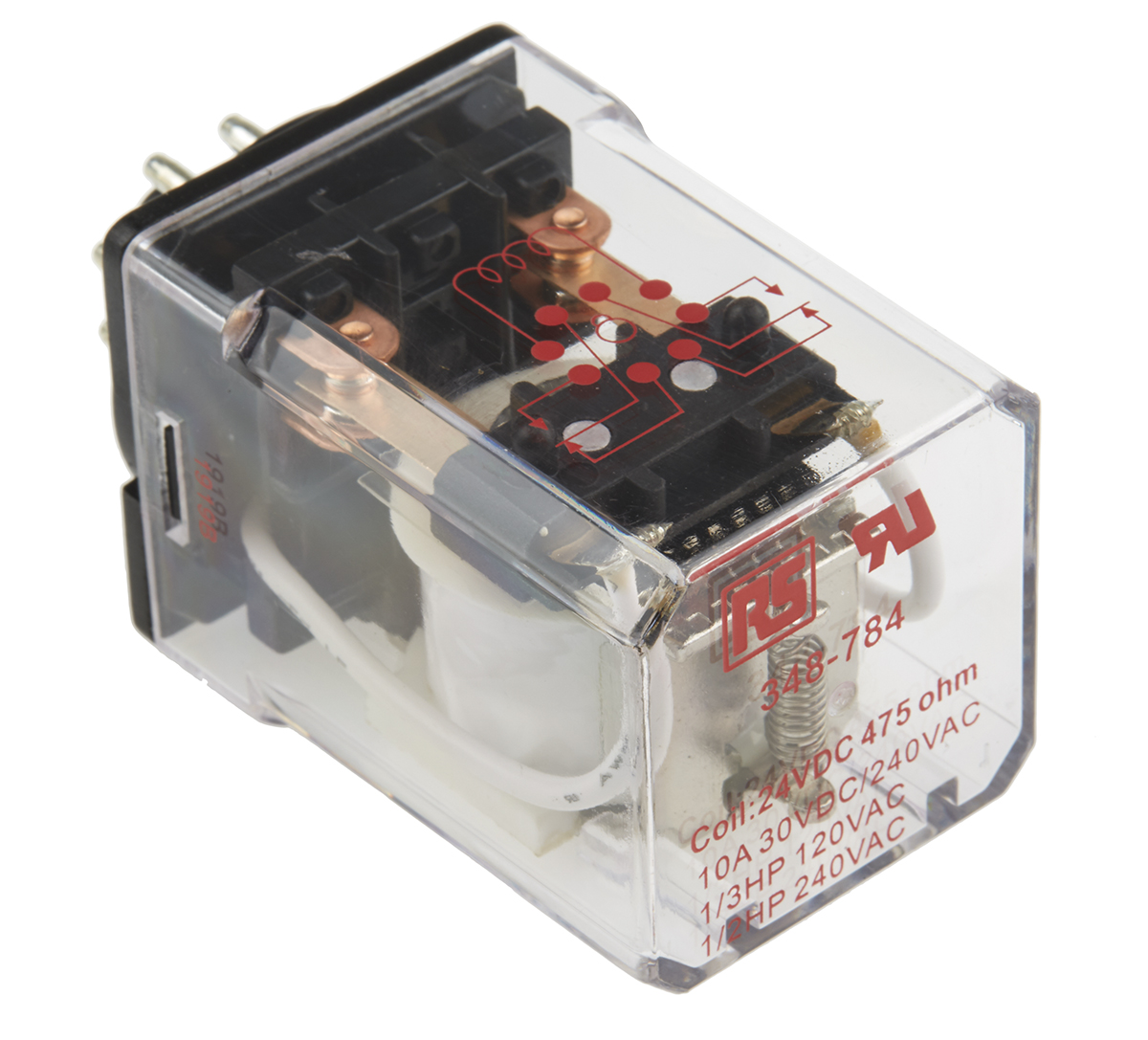 The RS Pro 348-784 is a DPDT Non-Latching Power Relay designed for dependable general-purpose switching. Operating at 24 V dc coil voltage, it delivers robust performance through up to 10 million mechanical cycles. The DPDT (double-pole, double-throw) design offers flexible switching pathways, while silver-alloy contacts ensure excellent conductivity and prolonged lifespan. With impressive switching capacities, handling up to 300 W DC and 2.4 kVA AC, the 348-784 is ready for heavy usage across industrial and automation applications. Certified for safety (CUR E125370, UL E125370) and resilient across extreme temperature ranges (–45 °C to +65 °C), it combines durability and certification to meet rigorous operational requirements.