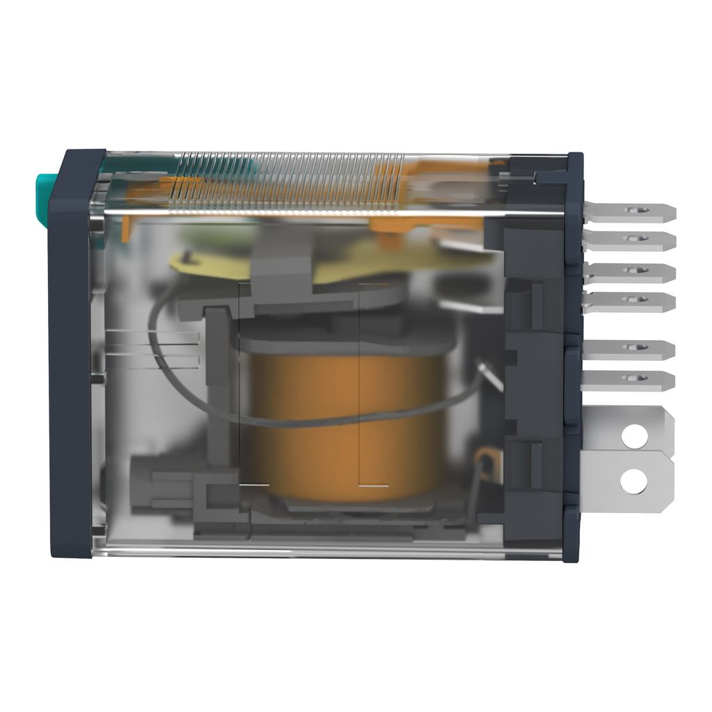 This is DPDT Non-Latching Relay Panel Mount 24V dc Coil 15 A manufactured by Schneider Electric. The manufacturer part number is RPM21BD. The coil voltage of the product is 24v dc. Applications Information involves power. It holds up to 640ω coil resistance. It is capable of doing 100000 cycles in a lifetime . Robust coil power of 850mw. While it carries 28v dc of maximum DC switching voltage. It has a maximum operating temperature of +55°c. It is integrated with 15 a @ 250 v ac, 15 a @ 28 v dc switching current. It has a maximum 15 a switching current AC . Latching Options - no. The contact is equipped with dpdt configuration. The product comes in 47mm depth. Better World Verification Options - green premium. Is it a better world product? yes. The product harmony relay rp, is a highly preferred choice for users. Its accurate length is 31mm. In addition, the height is 27mm. It has a minimum 15 a DC switching current . It has a maximum AC switching voltage of 250v ac. Whereas, the minimum operating temperature of the product is -40°c. It also features an AC switching power of 3.75 kva. It has equipped with 2 poles. The product is made from sturdy silver alloy materials.