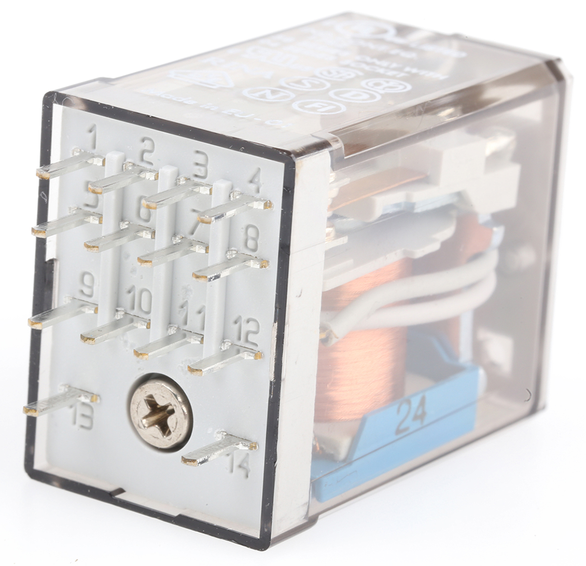This is 4PDT Non-Latching Relay PCB Mount 24V dc Coil 7 A manufactured by Finder. The manufacturer part number is 55.14.9.024.0000. It has a maximum operating temperature of +85°c. The product is available in pcb mount configuration. Robust coil power of 1w. The product 55 series, is a highly preferred choice for users. Latching Options - no. The coil voltage of the product is 24v dc. Its accurate length is 27.7mm. In addition, the height is 35.8mm. It is integrated with 7a switching current. Applications Information involves power. The product comes in 20.7mm depth. It has a maximum AC switching voltage of 250v ac. Whereas, the minimum operating temperature of the product is -40°c. It also features an AC switching power of 1.75 kva. The contact is equipped with 4pdt configuration. The product has 4kv isolation coil to contact. The product is made from sturdy silver alloy materials. It has equipped with 4 poles. The terminal is a through hole type. It holds up to 600ω coil resistance.