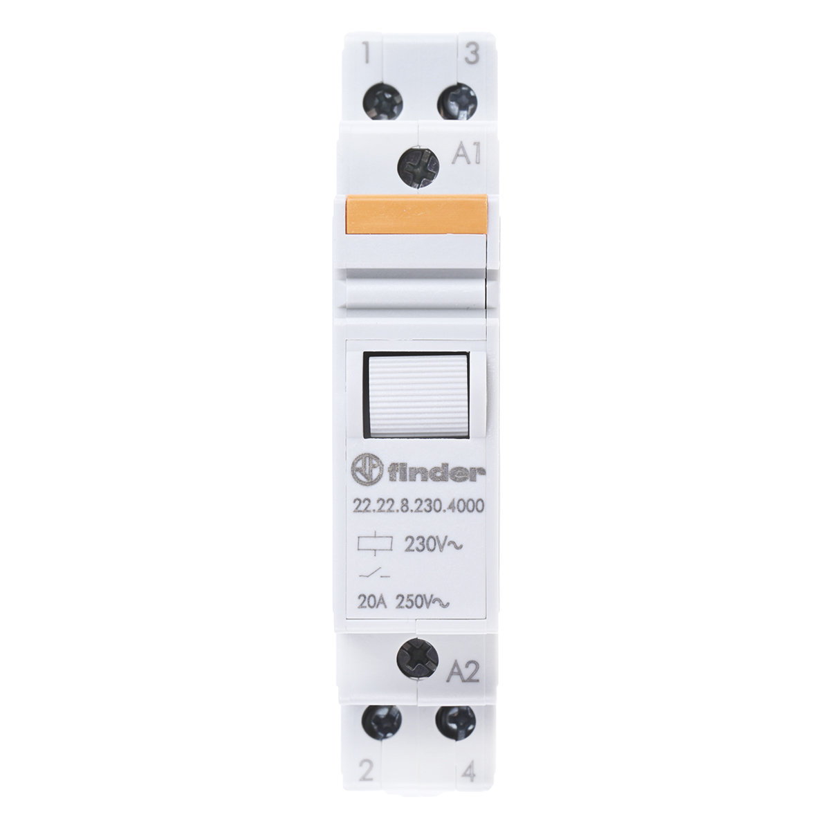 This is DPNO Non-Latching Relay DIN Rail 230V ac Coil 20 A manufactured by Finder. The manufacturer part number is 22.22.8.230.4000. It has a maximum operating temperature of +40°c. The product is available in din rail configuration. Robust coil power of 3w. The product 22 series, is a highly preferred choice for users. Latching Options - no. The coil voltage of the product is 230v ac. In addition, the height is 84mm. It is integrated with 20a switching current. The product comes in 58.4mm depth. It has a maximum AC switching voltage of 250v ac. Whereas, the minimum operating temperature of the product is -40°c. It also features an AC switching power of 5 kva. The contact is equipped with dpst configuration. The product has 4kv isolation coil to contact. The product is made from sturdy silver alloy materials. It has equipped with 2 poles. The terminal is a screw type. It holds up to 4250ω coil resistance.