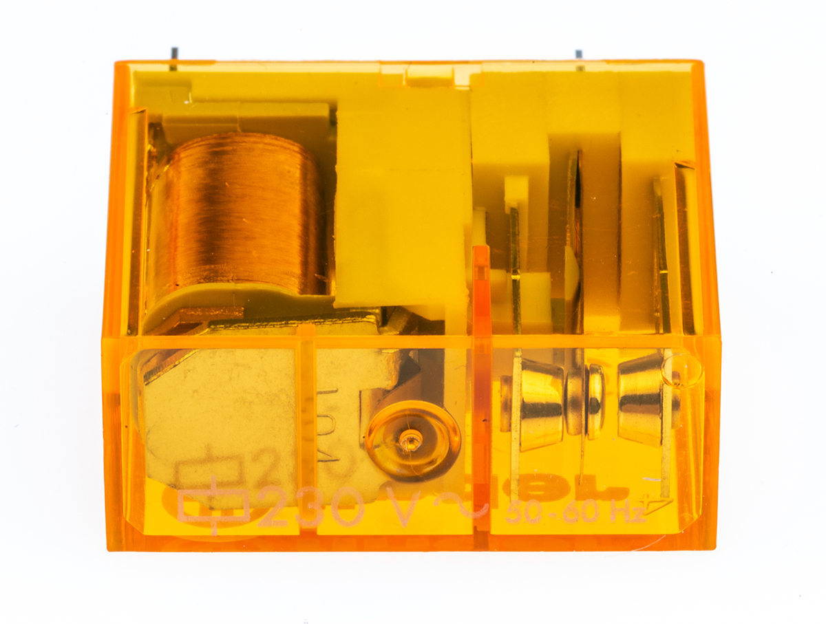 This is SPDT Non-Latching Relay PCB Mount 230V Coil 10 A manufactured by Finder. The manufacturer part number is 40.31.8.230.0000. It has a maximum operating temperature of +85°c. The product is available in pcb mount configuration. Robust coil power of 1.2w. The product 40 series, is a highly preferred choice for users. Latching Options - no. The coil voltage of the product is 230v ac. Its accurate length is 29mm. In addition, the height is 25mm. It is integrated with 10a switching current. Applications Information involves pcb. The product comes in 12.4mm depth. It has a maximum AC switching voltage of 400v ac. Whereas, the minimum operating temperature of the product is -40°c. It also features an AC switching power of 2.5 kva. The contact is equipped with spdt configuration. The product has 6kv isolation coil to contact. The product is made from sturdy silver alloy materials. It has equipped with 1 poles. The terminal is a through hole type. It holds up to 28000ω coil resistance.