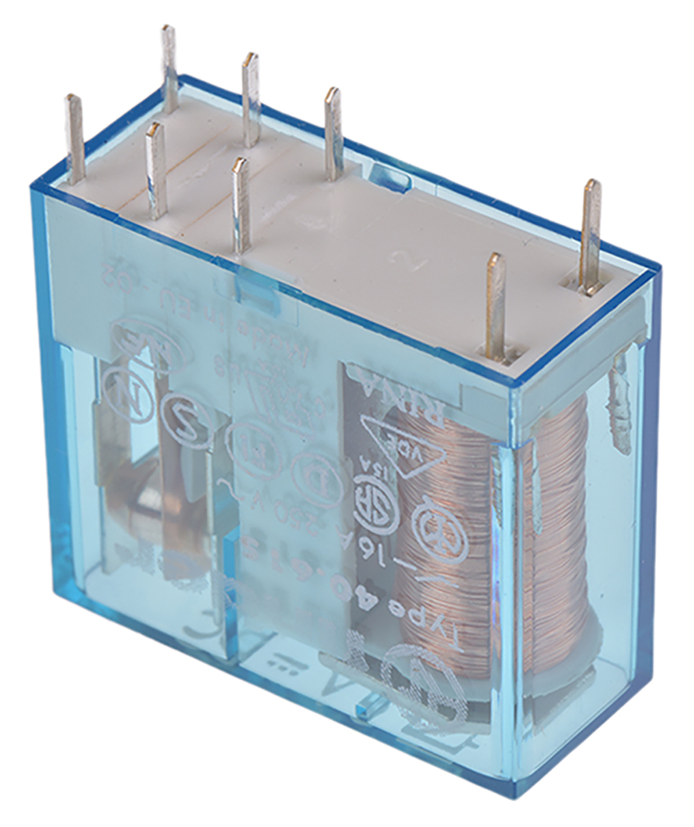 This is SPDT PCB Mount Non-Latching Relay 6V dc Coil manufactured by Finder. The manufacturer part number is 40.61.7.006.0000. It has a maximum operating temperature of +85°c. The product is available in pcb mount configuration. Robust coil power of 500mw. The product 40 series, is a highly preferred choice for users. Latching Options - no. The coil voltage of the product is 6v dc. Its accurate length is 29mm. In addition, the height is 25mm. It is integrated with 16a switching current. Applications Information involves pcb. The product comes in 12.4mm depth. It has a maximum AC switching voltage of 400v ac. Whereas, the minimum operating temperature of the product is -40°c. It also features an AC switching power of 4 kva. The contact is equipped with spdt configuration. The product has 6kv isolation coil to contact. The product is made from sturdy silver alloy materials. It has equipped with 1 poles. The terminal is a through hole type. It holds up to 75ω coil resistance.