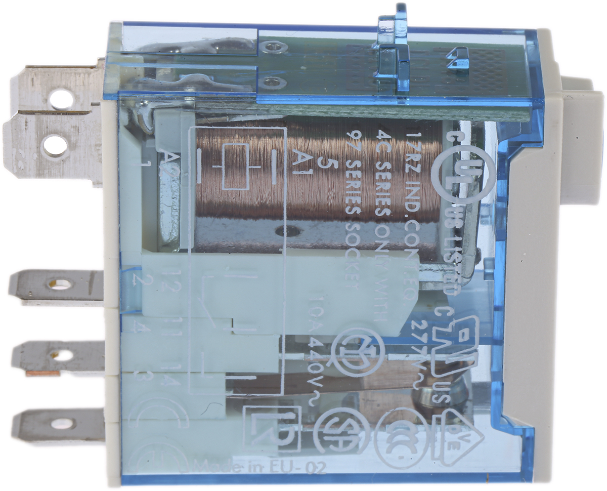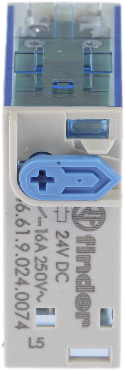 This is SPDT Non-Latching Relay Plug In 24V dc Coil 16 A manufactured by Finder. The manufacturer part number is 46.61.9.024.0074. The coil voltage of the product is 24v dc. Applications Information involves general purpose. The terminal is a quick connect type. It holds up to 1200ω coil resistance. It is capable of doing 100000 cycles in a lifetime . The product complies with all safety standards, such as ce, eac. Robust coil power of 500mw. The product has 6kv isolation coil to contact. It has a maximum operating temperature of +70°c. It is integrated with 16a switching current. Whereas, the minimum operating temperature of the product is -40°c. Latching Options - no. The contact is equipped with spdt configuration. The product comes in 12.4mm depth. The product is available in plug in configuration. The product 46 series, is a highly preferred choice for users. Its accurate length is 29mm. In addition, the height is 32.8mm. It has a maximum AC switching voltage of 250v ac. It also features an AC switching power of 4 kva. It has equipped with 1 poles. The product is made from sturdy silver alloy materials.