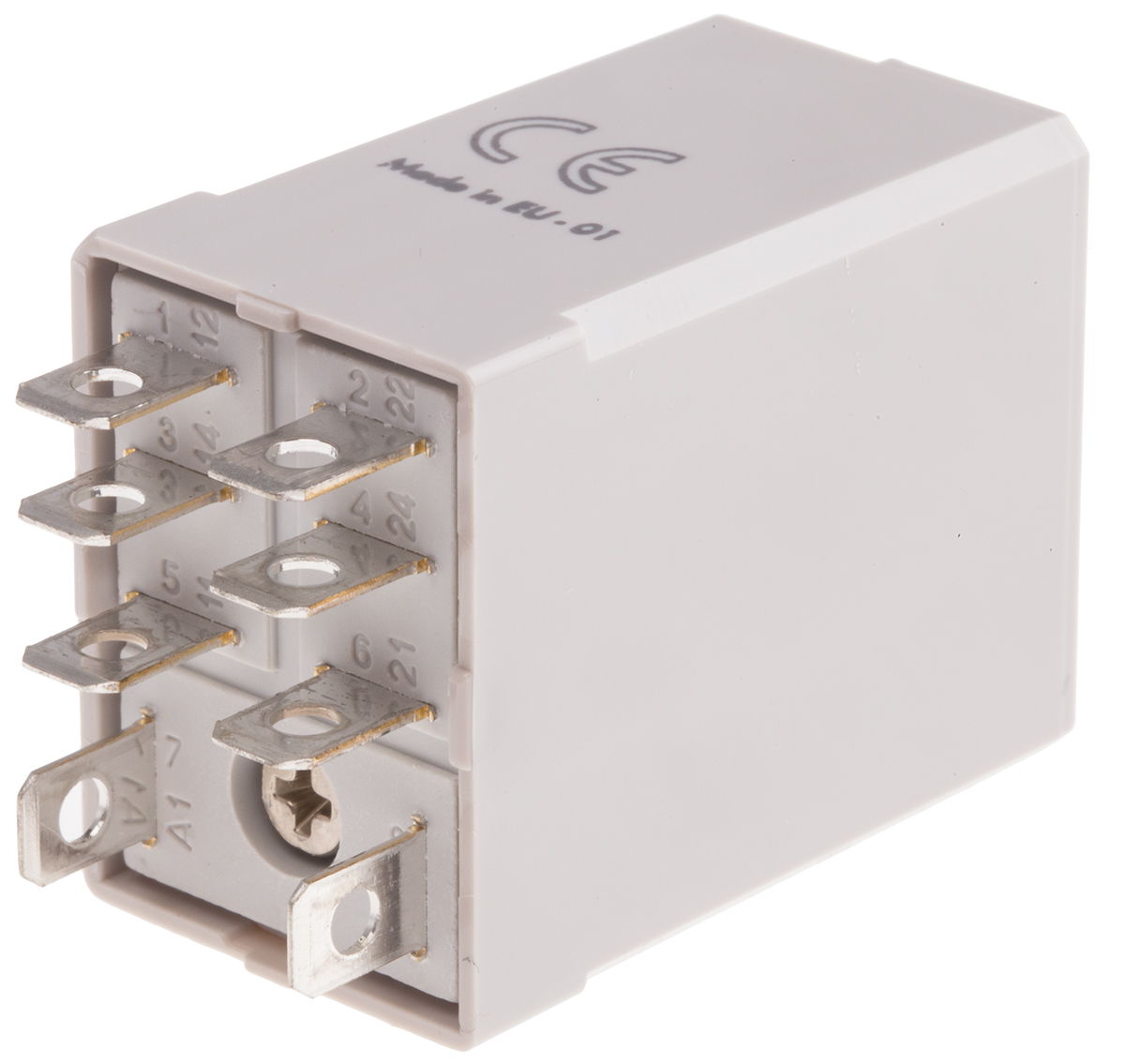 This is DPDT Non-Latching Relay Plug In 24V dc Coil 12 A manufactured by Finder. The manufacturer part number is 56.32.9.024.0000T. The coil voltage of the product is 24v dc. It consists of single coils. Applications Information involves railways. The terminal is a quick connect type. It holds up to 600ω coil resistance. It is capable of doing 100000 (electrical) cycles in a lifetime . The product complies with all safety standards, such as curus, eac. Robust coil power of 1.5w. While it carries 220v dc of maximum DC switching voltage. The product has 4kv isolation coil to contact. It has a maximum operating temperature of +70°c. It is integrated with 12a switching current. It has a maximum 20 a switching current AC . Latching Options - no. The contact is equipped with dpdt configuration. The product comes in 20.7mm depth. The product is available in plug in configuration. The product 56 series, is a highly preferred choice for users. Its accurate length is 27.7mm. In addition, the height is 37.2mm. It has a maximum AC switching voltage of 400v ac. Whereas, the minimum operating temperature of the product is -40°c. It also features an AC switching power of 3 kva. It has equipped with 2 poles. The product is made from sturdy silver alloy materials.
