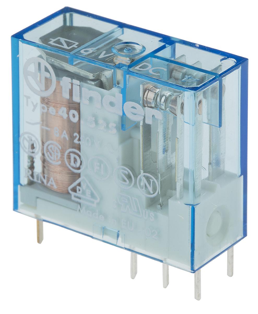 This is DPDT Non-Latching Relay PCB Mount 6V dc Coil 8 A manufactured by Finder. The manufacturer part number is 40.52.7.006.0000. It has a maximum operating temperature of +85°c. The product is available in pcb mount configuration. Robust coil power of 500mw. The product 40 series, is a highly preferred choice for users. Latching Options - no. The coil voltage of the product is 6v dc. Its accurate length is 29mm. In addition, the height is 25mm. It is integrated with 8a switching current. Applications Information involves pcb. The product comes in 12.4mm depth. It has a maximum AC switching voltage of 400v ac. Whereas, the minimum operating temperature of the product is -40°c. It also features an AC switching power of 2 kva. The contact is equipped with dpdt configuration. The product has 6kv isolation coil to contact. The product is made from sturdy silver alloy materials. It has equipped with 2 poles. The terminal is a through hole type. It holds up to 75ω coil resistance.