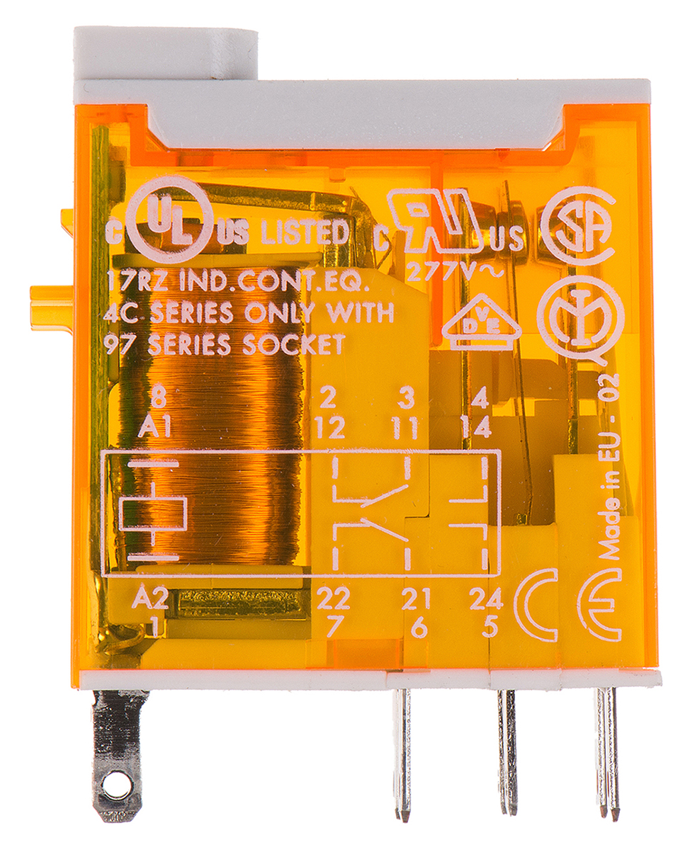 When a 24V AC voltage is applied to the coil terminals, the electromagnetic field activates the internal switch, closing or opening the double-pole double-throw (DPDT) contacts. Once the voltage is removed, the contacts return to their original state, making it non-latching and ideal for momentary control tasks.