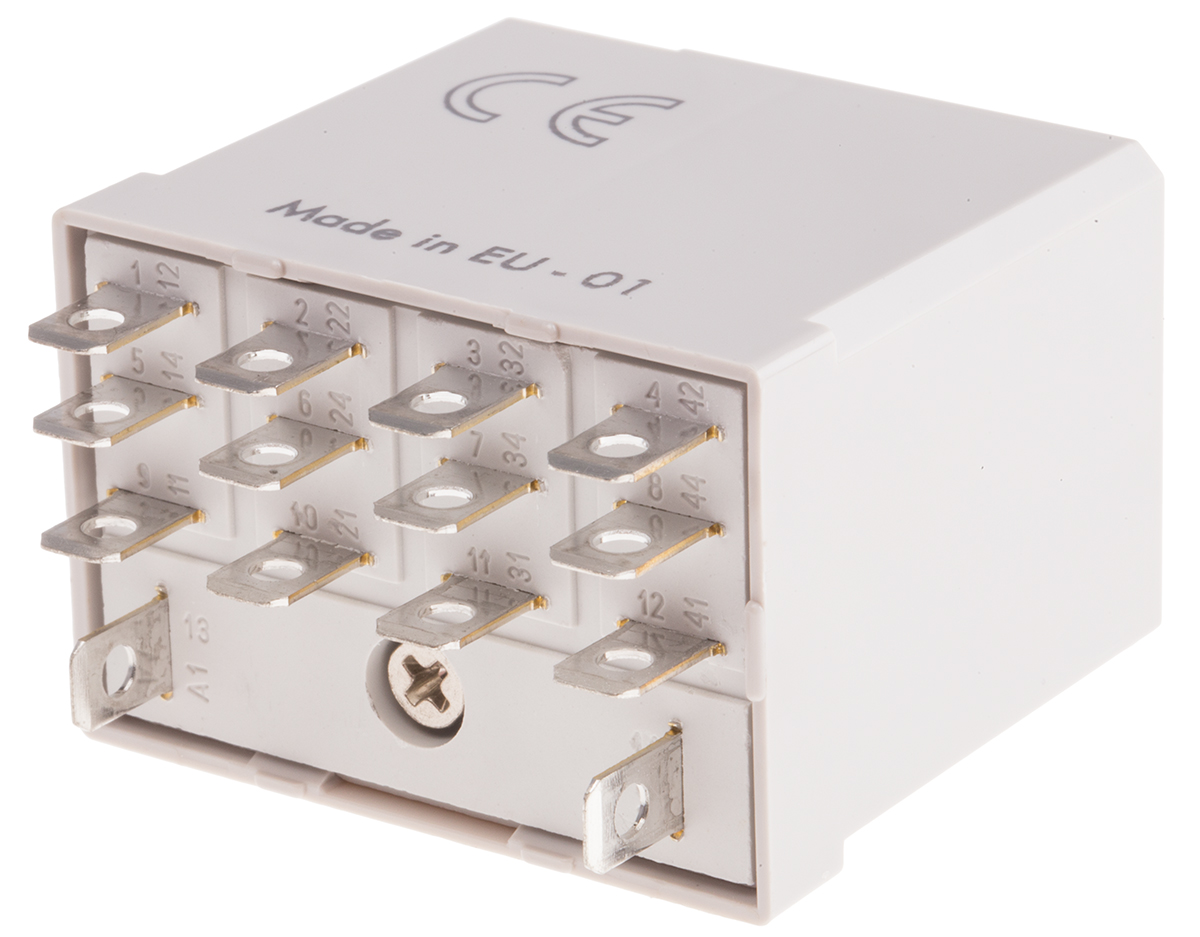 This is 4PDT Plug In Non-Latching Relay 110V dc Coil 12 A manufactured by Finder. The manufacturer part number is 56.34.9.110.0000T. The coil voltage of the product is 110v dc. It consists of single coils. Applications Information involves railways. The terminal is a quick connect type. It holds up to 10400ω coil resistance. It is capable of doing 100000 (electrical) cycles in a lifetime . The product complies with all safety standards, such as curus, eac. Robust coil power of 2w. While it carries 220v dc of maximum DC switching voltage. The product has 5kv isolation coil to contact. It has a maximum operating temperature of +70°c. It is integrated with 12a switching current. It has a maximum 20 a switching current AC . Latching Options - no. The contact is equipped with 4pdt configuration. The product comes in 40.8mm depth. The product is available in plug in configuration. The product 56 series, is a highly preferred choice for users. Its accurate length is 27.7mm. In addition, the height is 37.1mm. It has a maximum AC switching voltage of 400v ac. Whereas, the minimum operating temperature of the product is -40°c. It also features an AC switching power of 3 kva. It has equipped with 4 poles. The product is made from sturdy silver alloy materials.