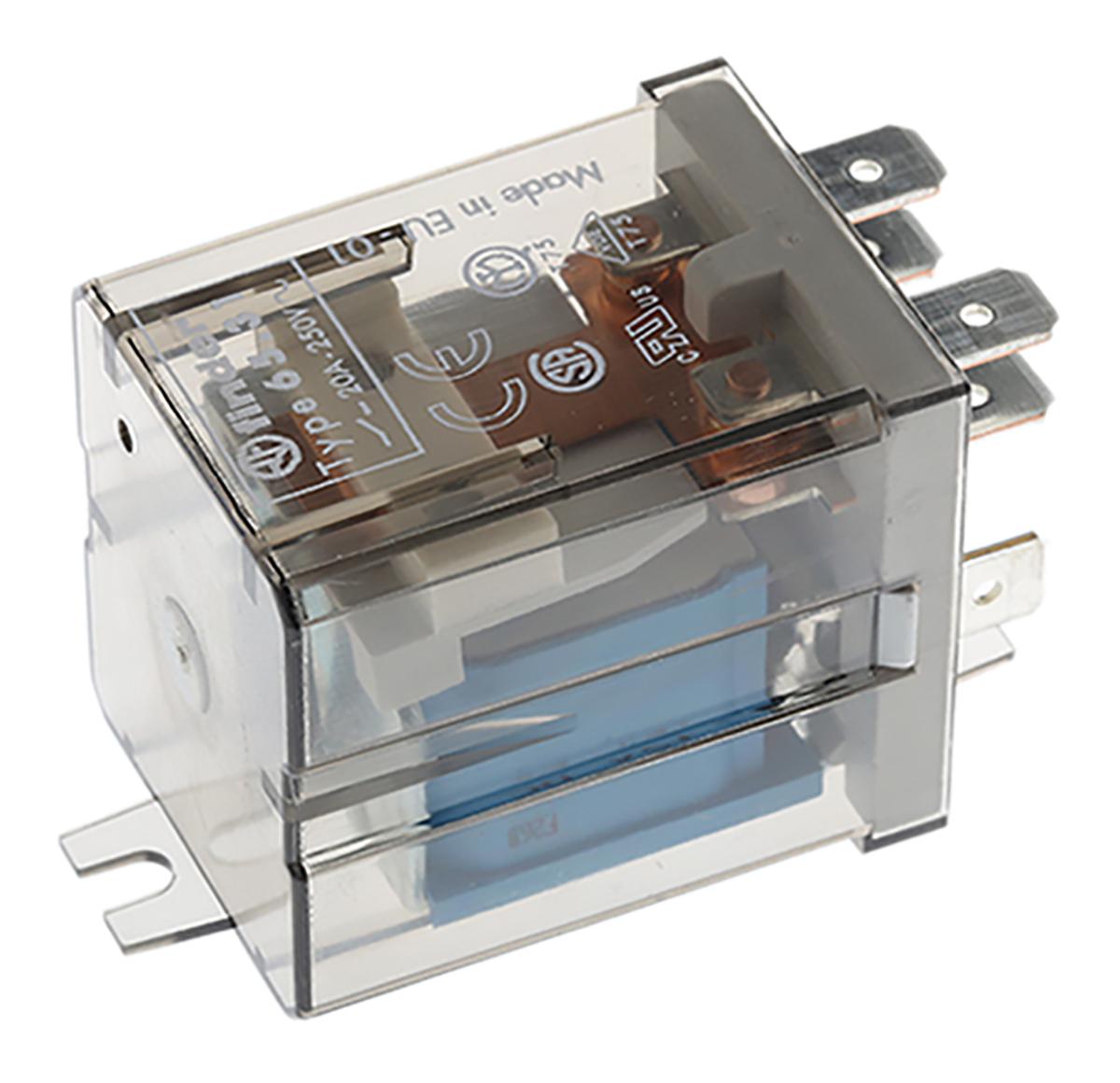 This is DPST Flange Mount Non-Latching Relay 12V dc Coil 20 A manufactured by Finder. The manufacturer part number is 65.31.9.012.0000. It has a maximum operating temperature of +75°c. The product is available in flange mount configuration. Robust coil power of 1.3w. The product 65 series, is a highly preferred choice for users. Latching Options - no. The coil voltage of the product is 12v dc. Its accurate length is 62.2mm. In addition, the height is 36.5mm. It is integrated with 20a switching current. Applications Information involves power. The product comes in 32.2mm depth. It has a maximum AC switching voltage of 250v ac. Whereas, the minimum operating temperature of the product is -40°c. It also features an AC switching power of 5 kva. The contact is equipped with spdt configuration. The product has 4kv isolation coil to contact. The product is made from sturdy silver alloy materials. It has equipped with 1 poles. The terminal is a quick connect type. It holds up to 110ω coil resistance.